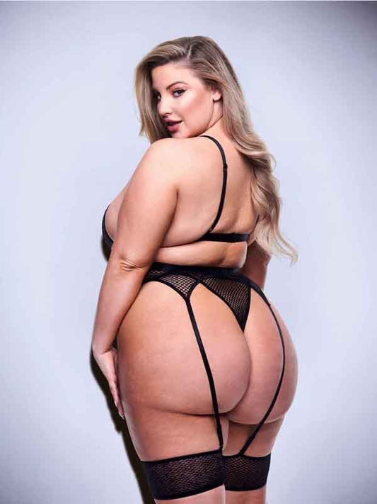Baci 3 Piece Lace & Mesh Bra Garter & Panty Set Queen