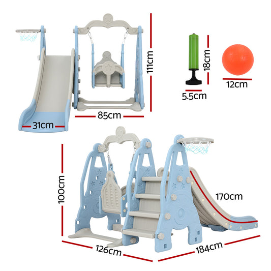 Keezi Kids Slide Swing Set Basketball Hoop Outdoor Playground Toys 170cm Blue