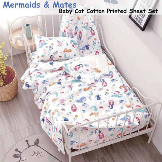 Mermaids & Mates Baby 100% Cotton Printed Sheet Set Cot Size
