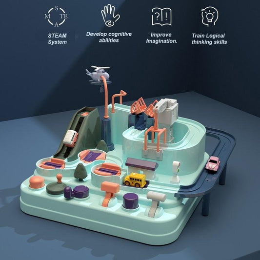 Rail Car Train Track Toys for Kids Boys Girls Xmas Gifts Racing Cars Mechanical Adventure Brain Table Game