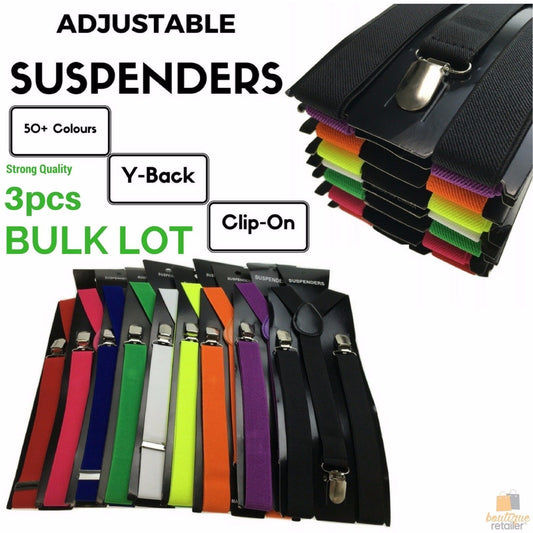 3x Mens Suspenders Braces Adjustable Strong Clip On Elastic Formal Wedding Slim - Rainbow
