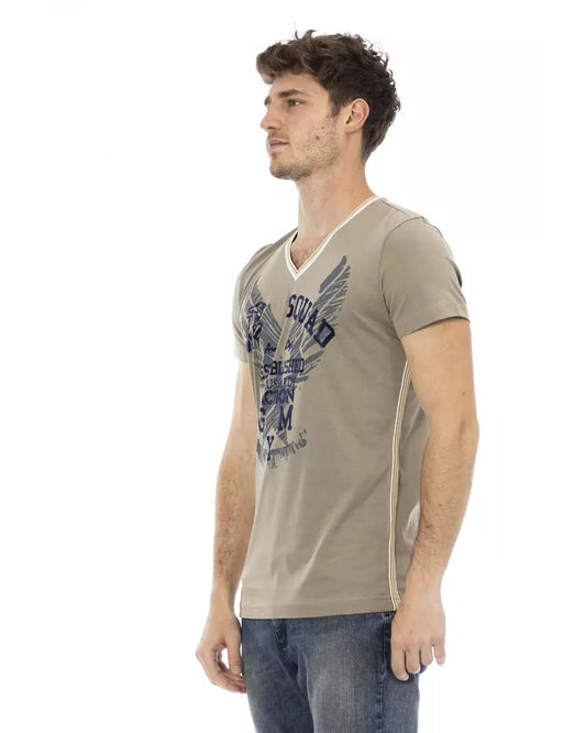 Short Sleeve T-shirt with V-neck and Front Print L Men