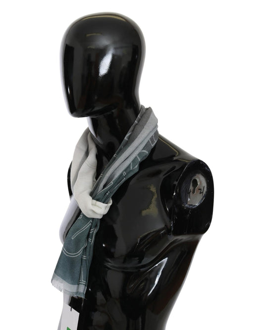 GF FERRE Blue Gray Patterned Scarf One Size Women