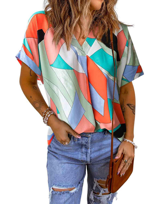 Azura Exchange Irregular Color Block Printed Short Sleeve Blouse - M