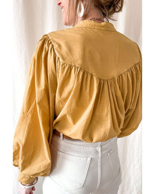 Azura Exchange Pleated Yellow Puff Sleeve Loose Shirt - XL