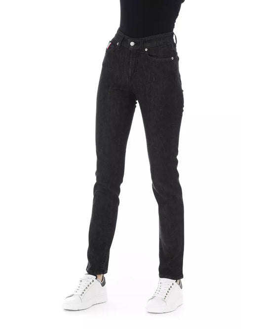 Regular Jeans with Logoed Button and Tricolor Insert. W28 US Women