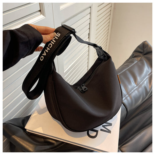 Black With Black Suspenders Large Capacity Canvas Shoulder Bag - Casual Crossbody Dumpling Bag