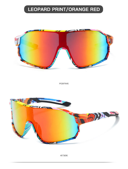 Fashionable Sports Sunglasses with Colorful Mirror Lenses - UV400 Protection for Cycling & Outdoor Activities Leopard