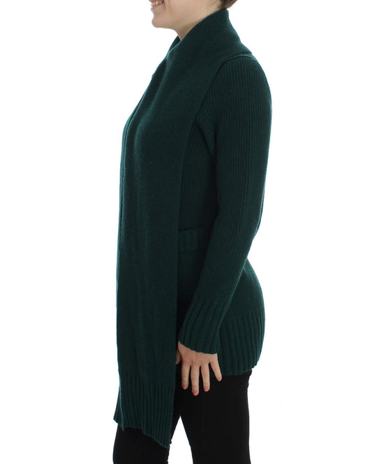 Green Cashmere Long Cardigan Sweater with Logo Details 44 IT Women
