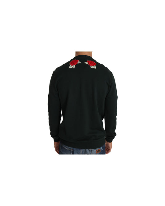 Dolce & Gabbana Green Cotton Crystal Heart Roses Embroidered Pullover Sweater 48 IT Men