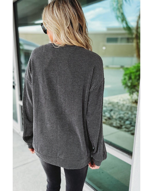 Azura Exchange Color Block Ribbed V-Neck Sweatshirt - S