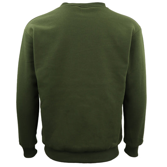 New Adult Unisex Plain Pullover Fleece Jumper Mens Long Sleeve Crew Neck Sweater, Olive, L