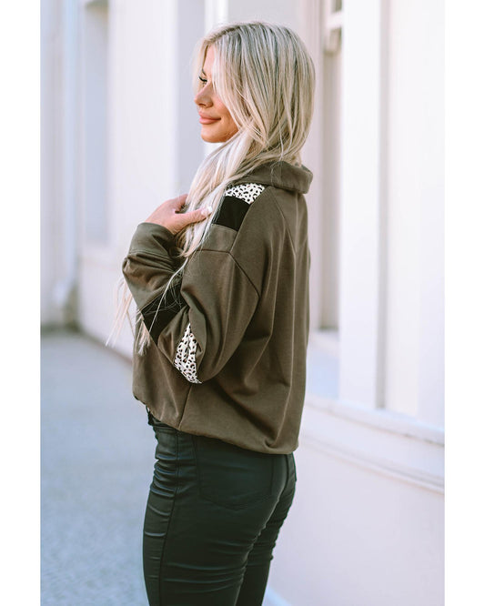 Azura Exchange Leopard Contrast Splicing Quarter Zip Sweatshirt - S
