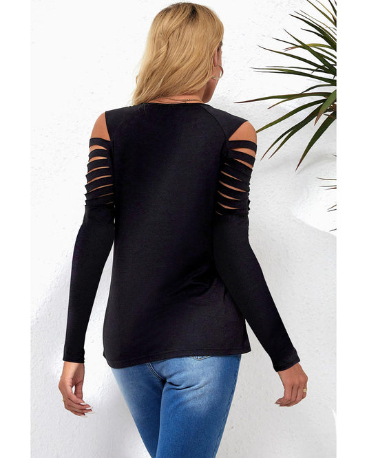 Azura Exchange Mesh Patch Ripped Long Sleeve Top - S