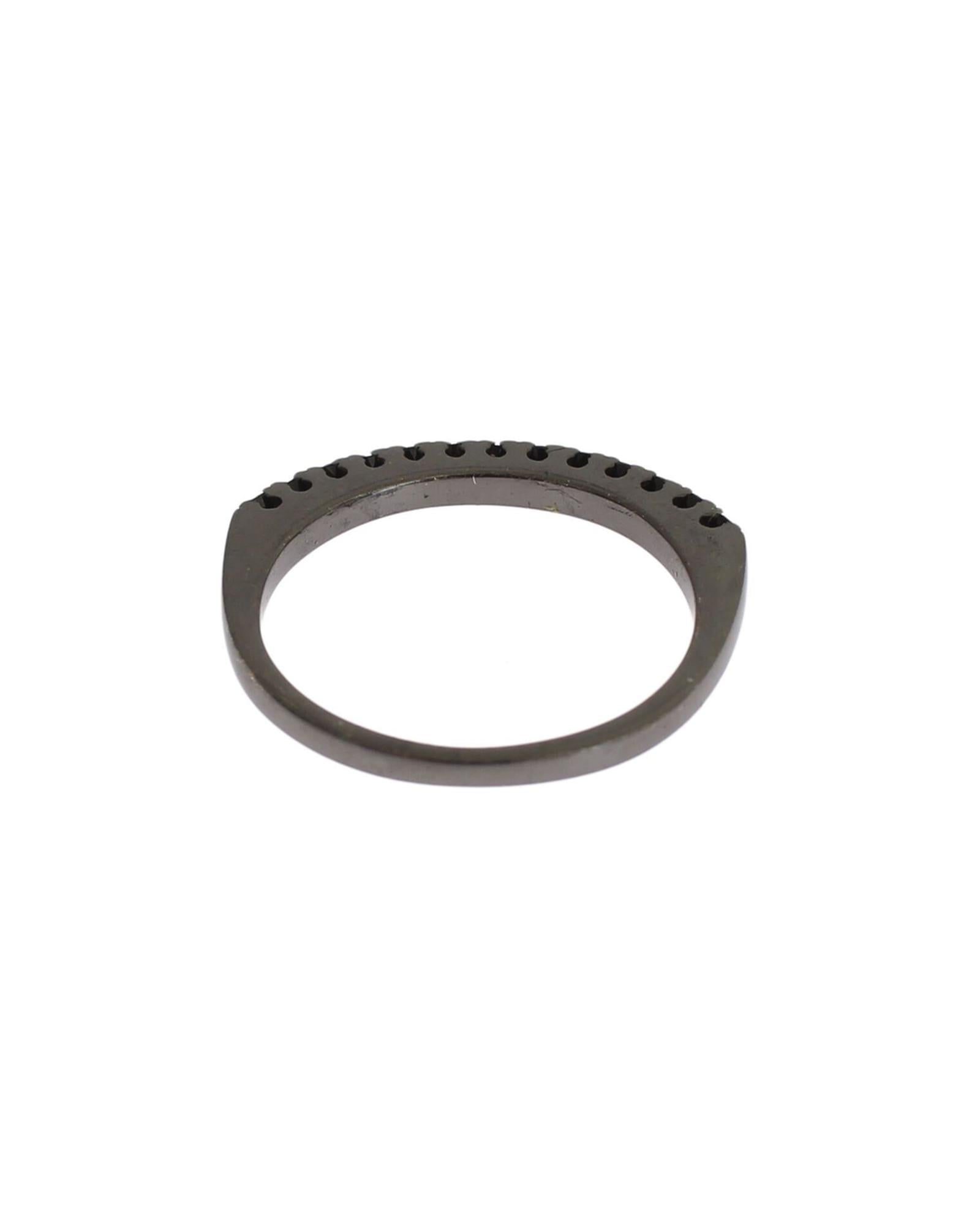100% Authentic NIALAYA Sterling Silver Ring with Black CZ Crystals 52 EU Women