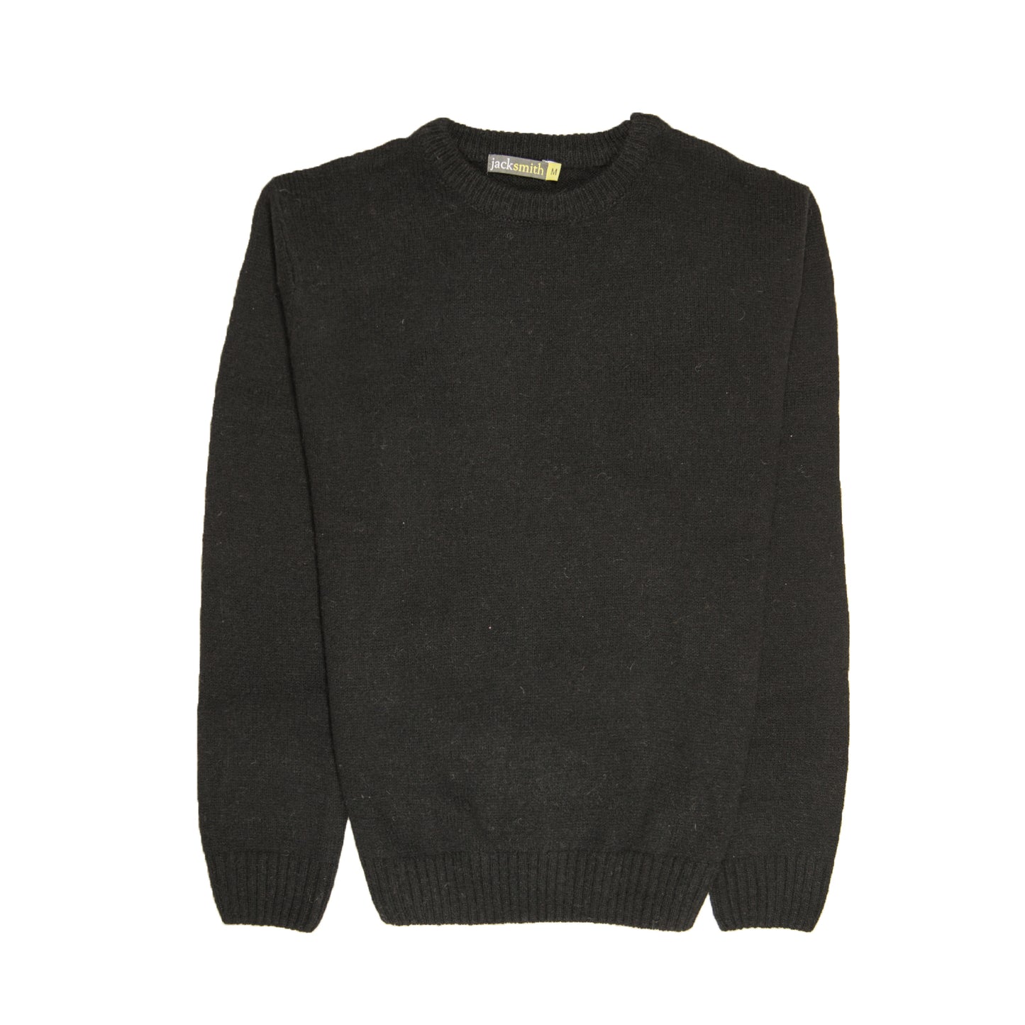 100% SHETLAND WOOL CREW Round Neck Knit JUMPER Pullover Mens Sweater Knitted - Plain Black - 6XL