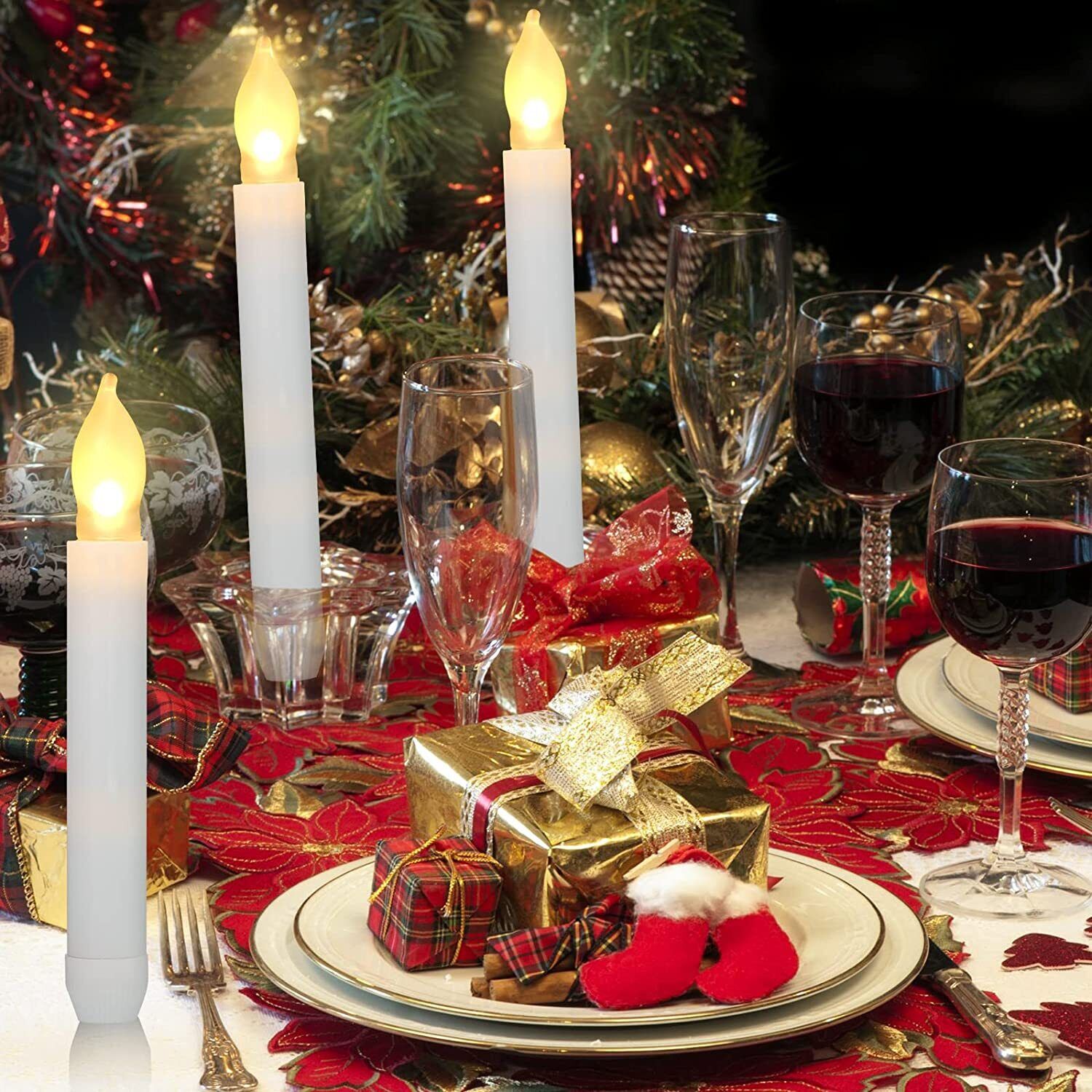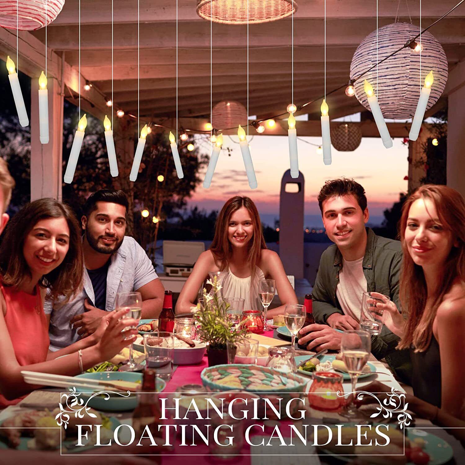 - WORK PERFECTLY TO GIVE A MAGICAL FEELING! - You can hang these led taper candles with fishing wire on the ceiling (or chandelier) to create "floating " candles for a Harry Potter themed party or trunk. They also work great for Christmas Eve candlelight service, church service, table decorations.