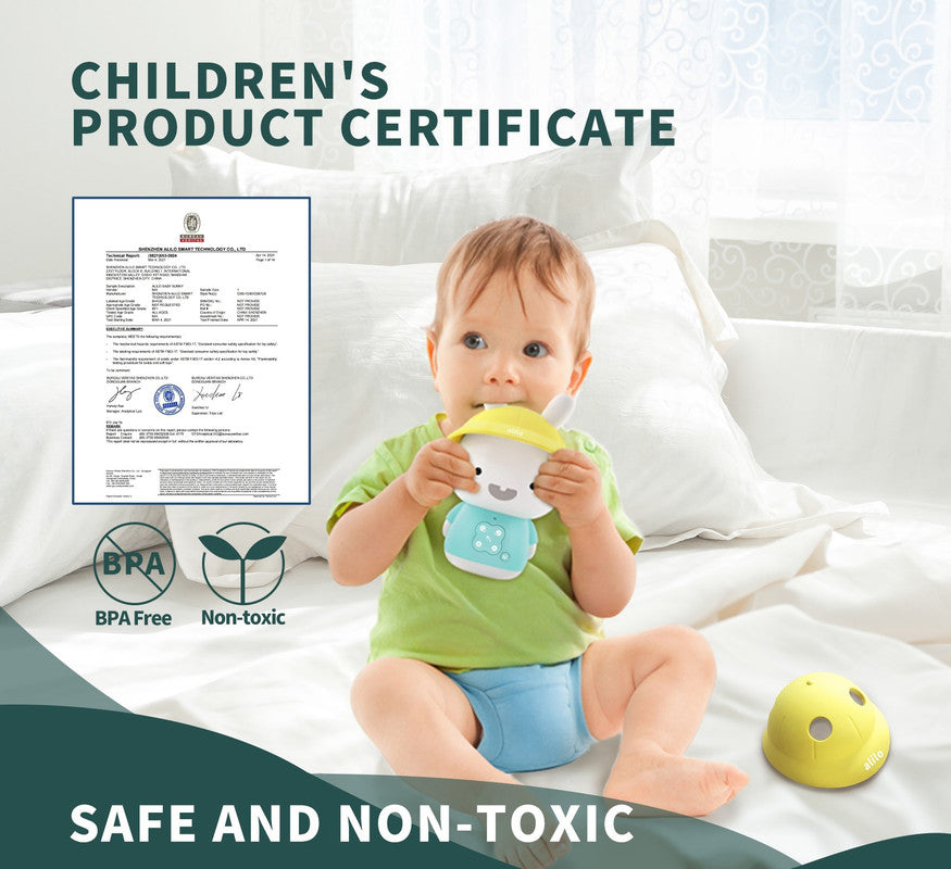 - ✨【Chewable Silicone Rabbit Ears】The bunny is made of food-grade silicone with ears and small yellow caps, designed for babies to chew and bite during teething, providing relief from discomfort and bringing joy to children. Additionally, it holds FCC, CE, RoHS, and CPC certifications. Its ABS material and hidden screw design ensure it is safe, environmentally friendly, sturdy, durable, and resistant to falls.