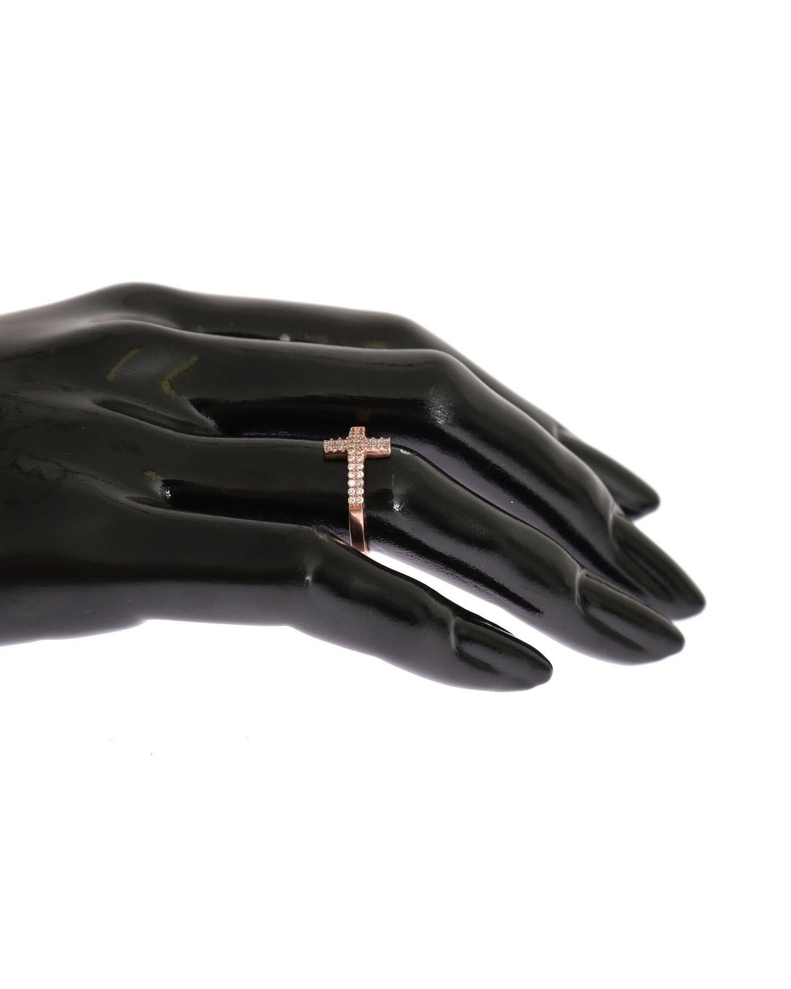 - Pink Gold 925 Silver Womens Cross CZ Ring