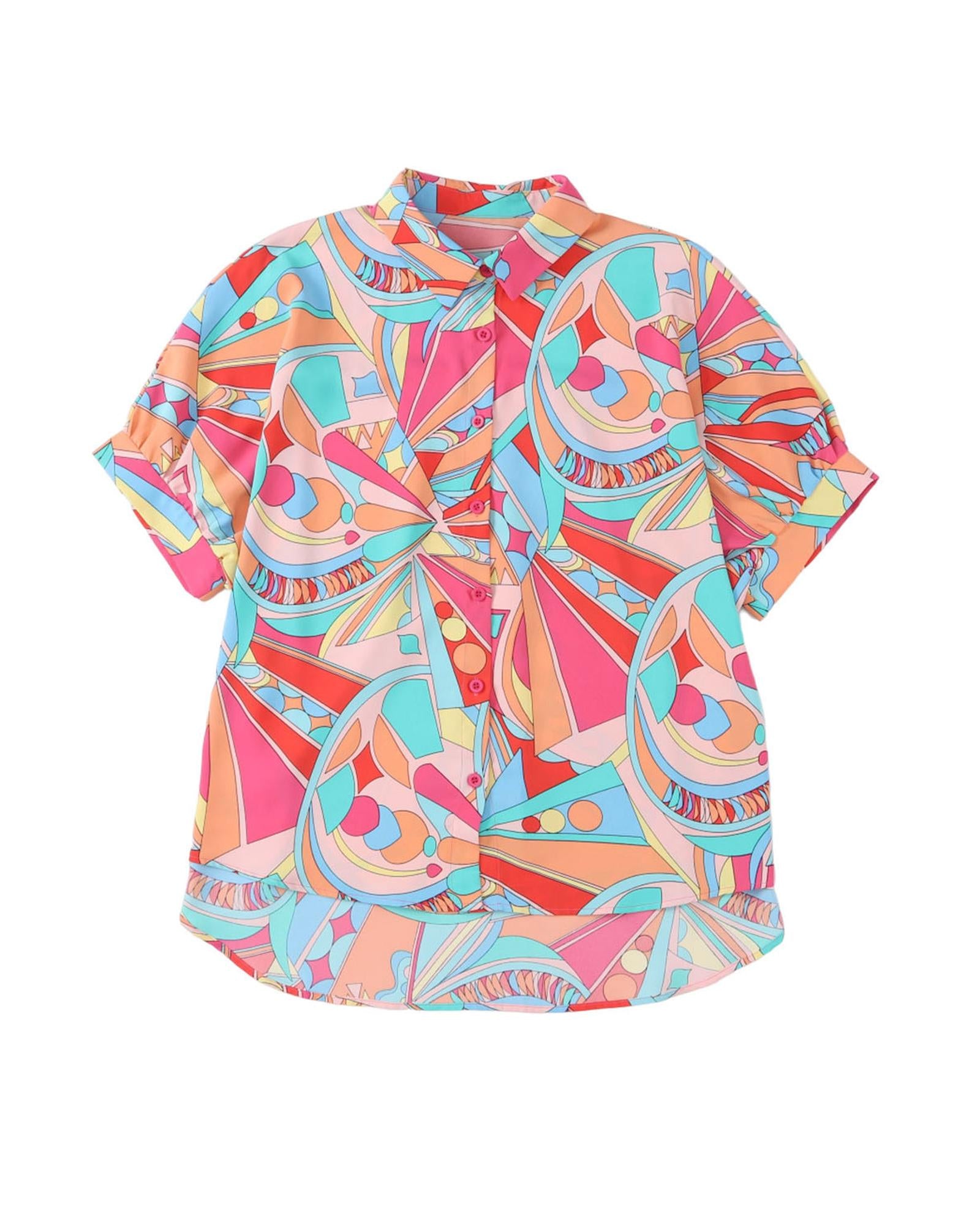 Azura Exchange Abstract Geometry Print Half Puff Sleeve Shirt - L