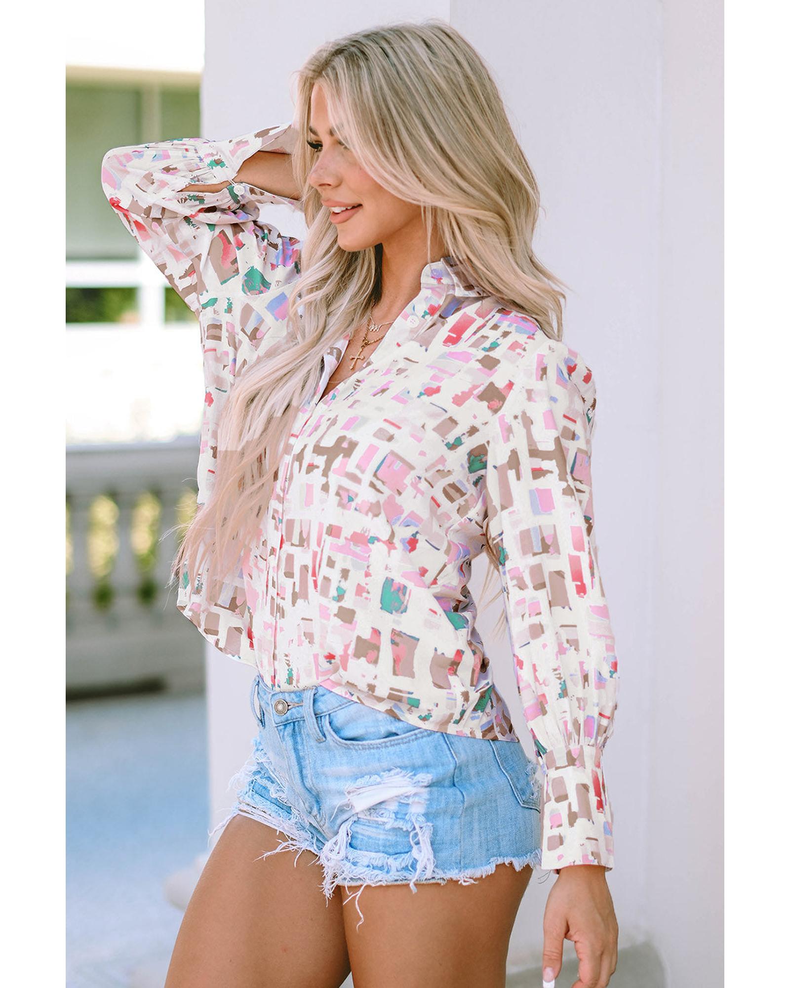 Azura Exchange Abstract Print Lantern Sleeve Casual Shirt - M
