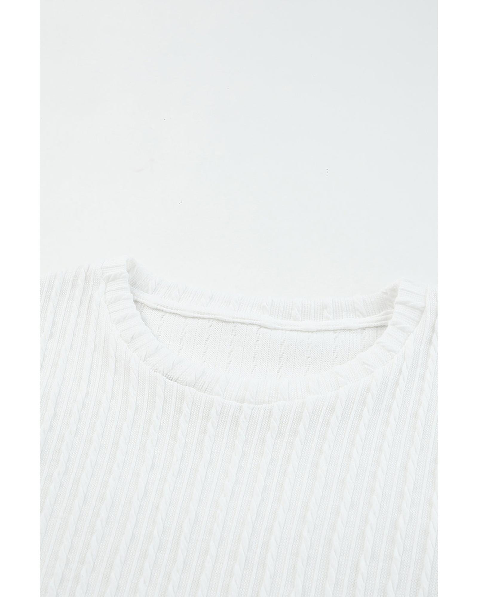 Azura Exchange Applique Mesh Sleeves Textured Knit Blouse - L