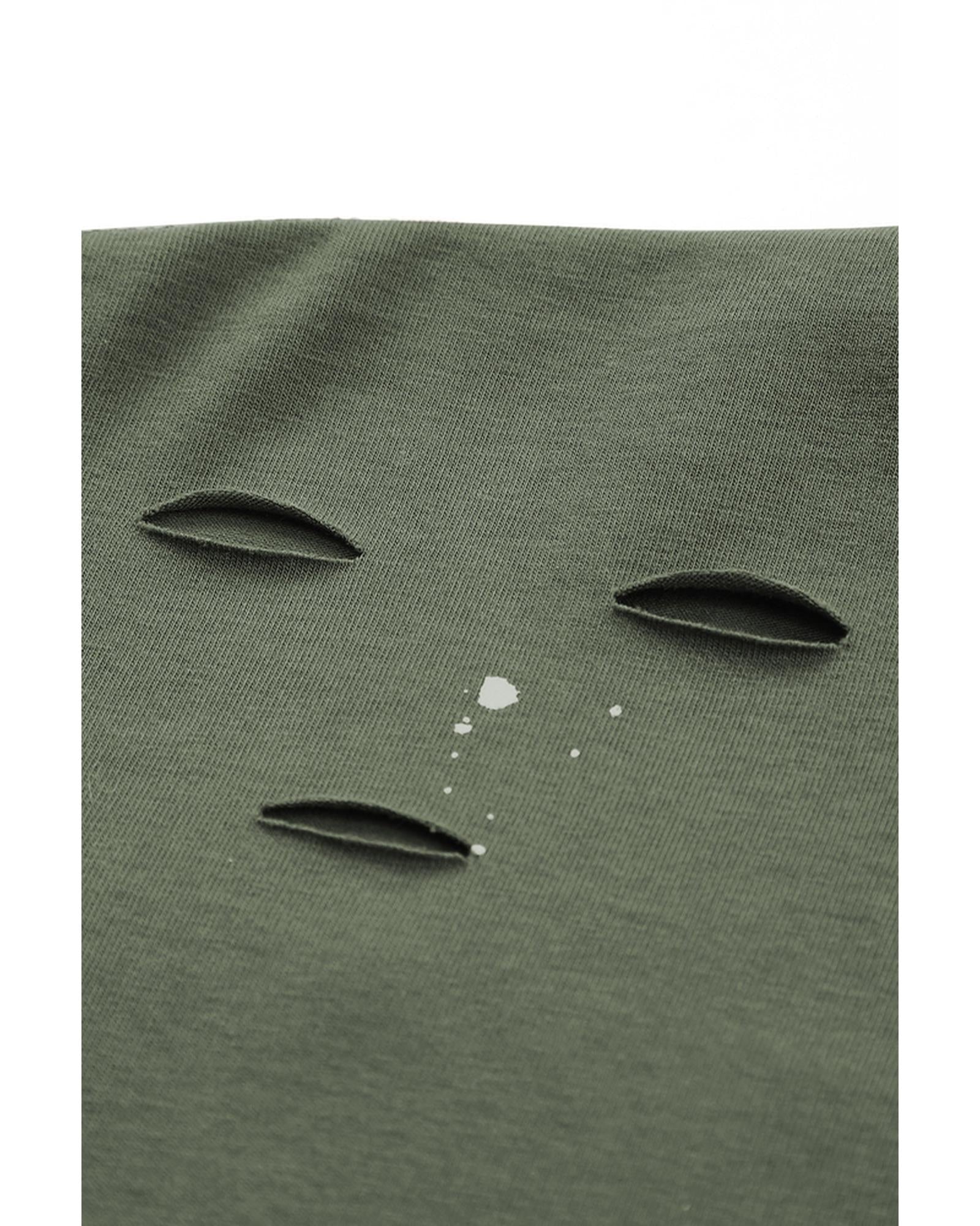 - Stylish and edgy Distressed Bleached Asymmetric Hem Short Sleeve Top