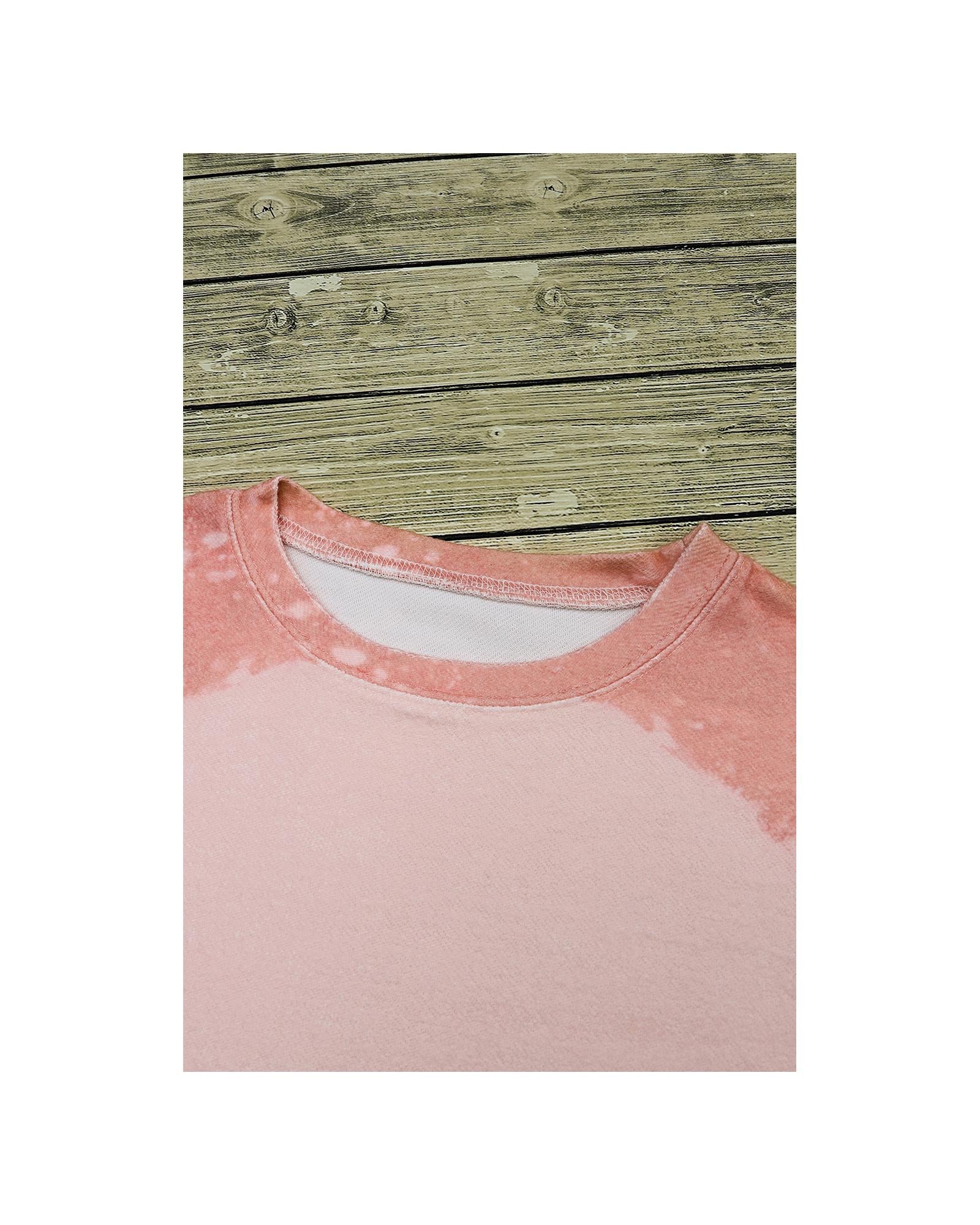 - Pink Bleached Round Neck Pullover Sweatshirt