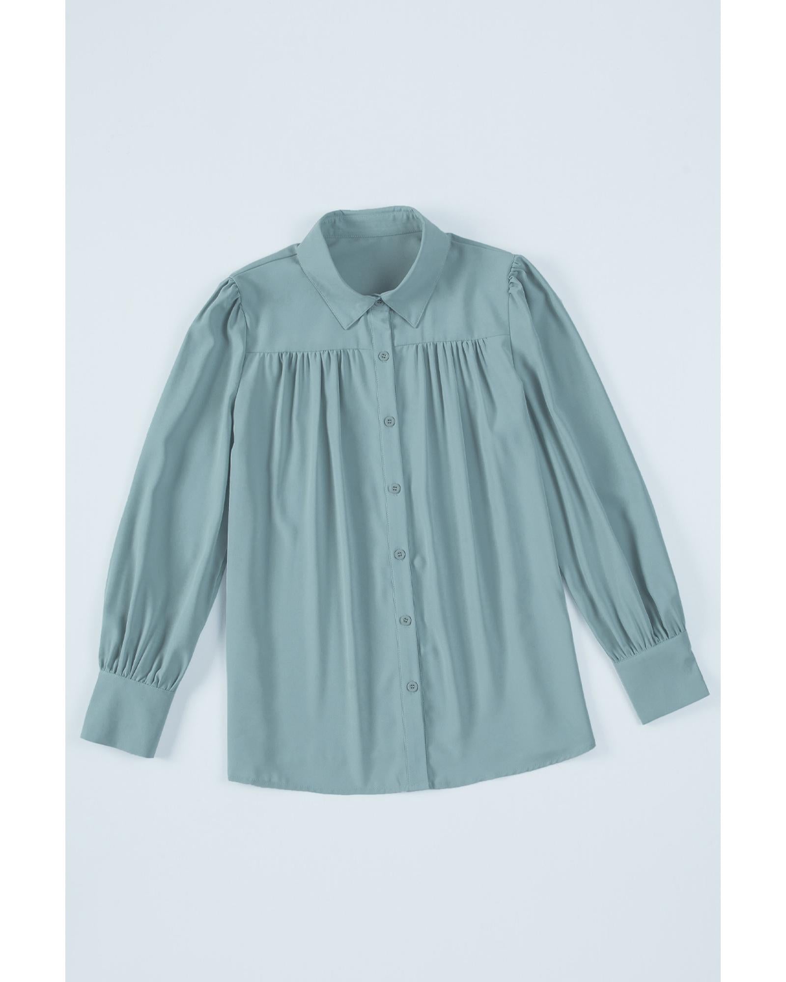 - Versatile and stylish Solid Color Button Up Puff Sleeve Blouse