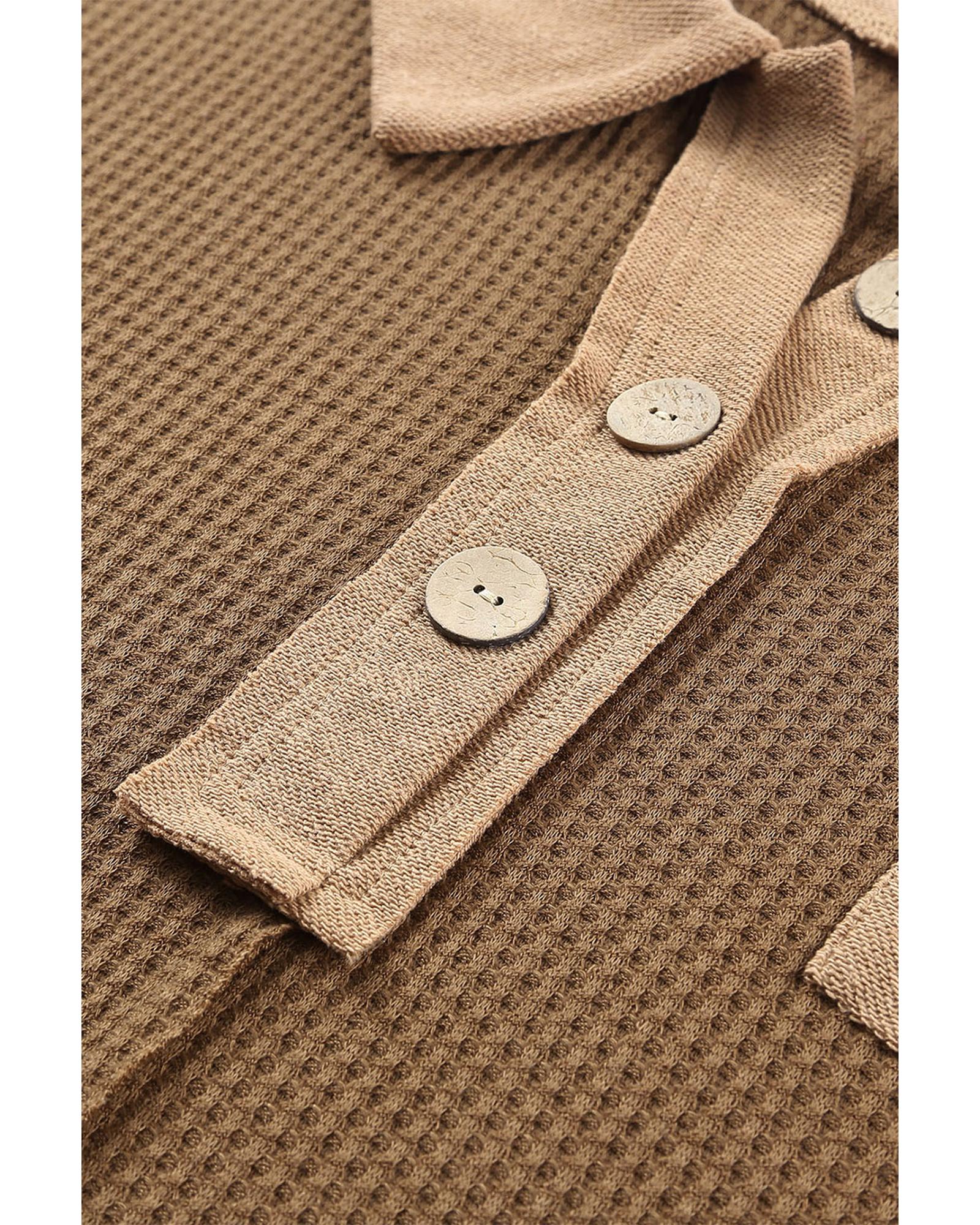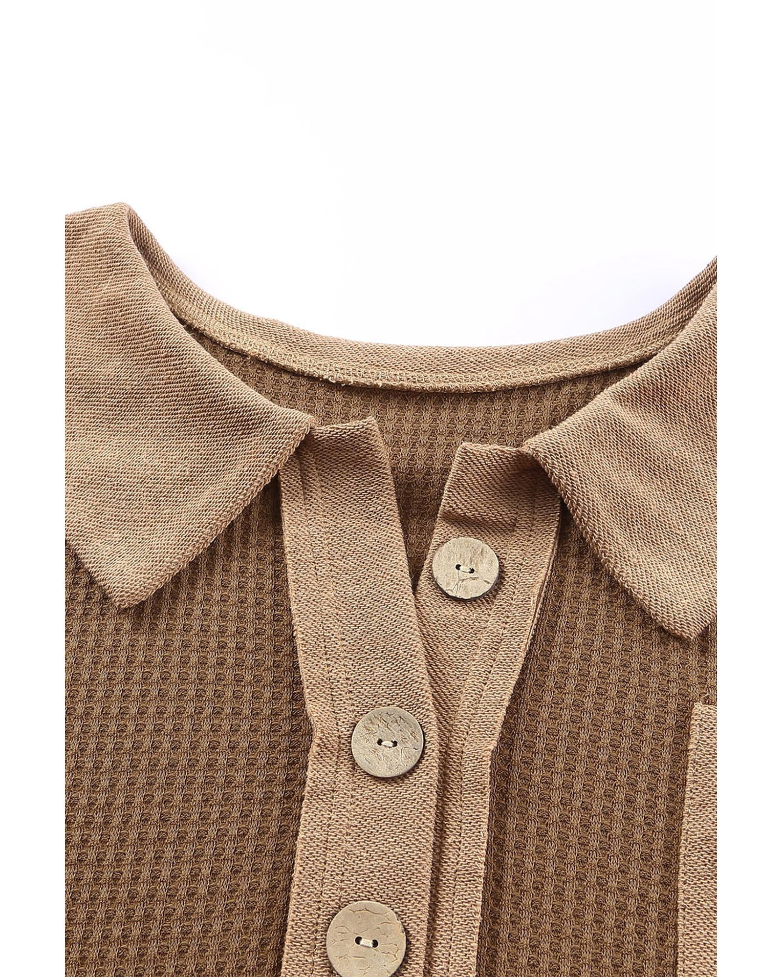 Azura Exchange Buttoned Waffle Knit Long Sleeve Top - 2XL