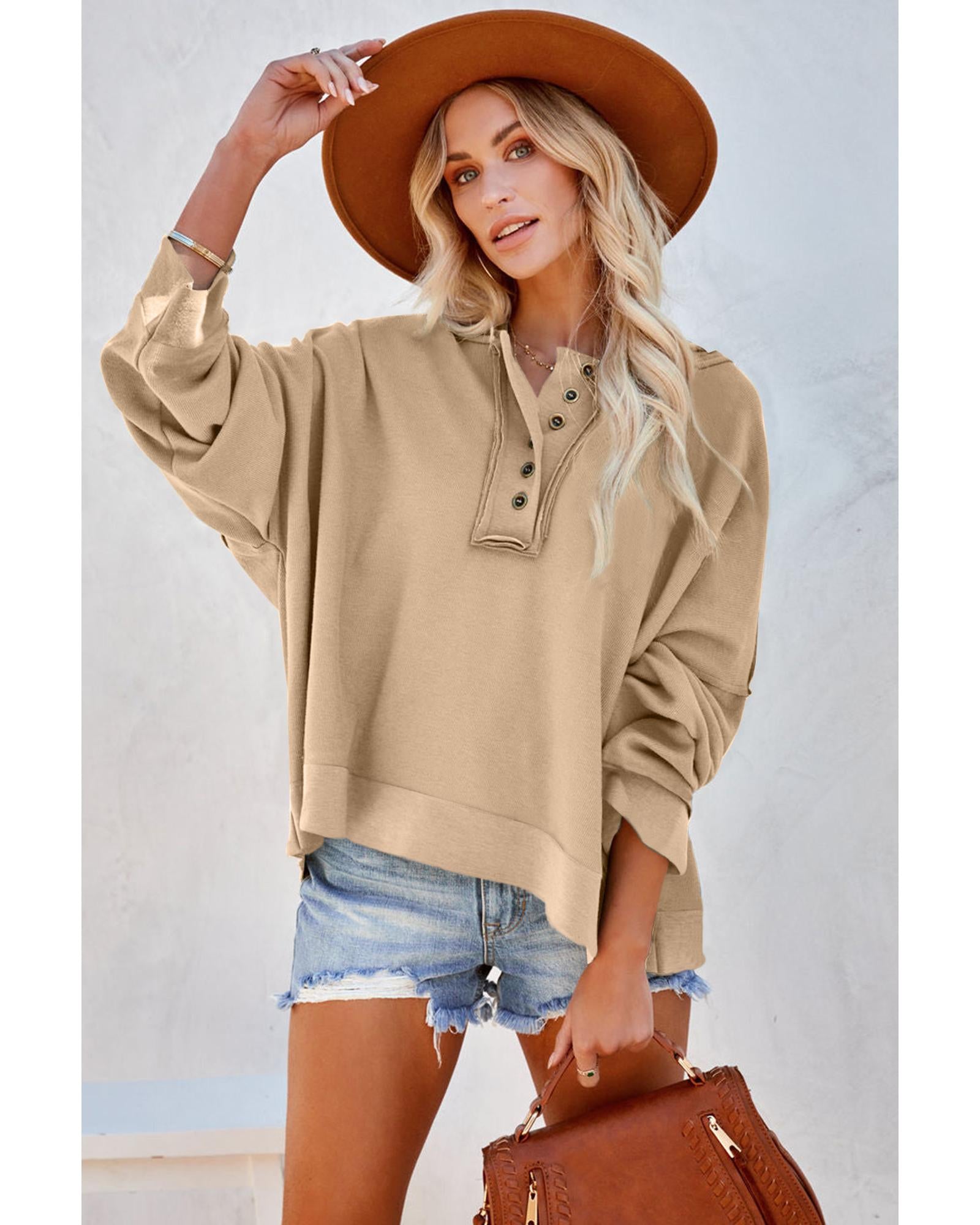 Azura Exchange Casual Khaki Hoodie with Patchwork Trim - XL