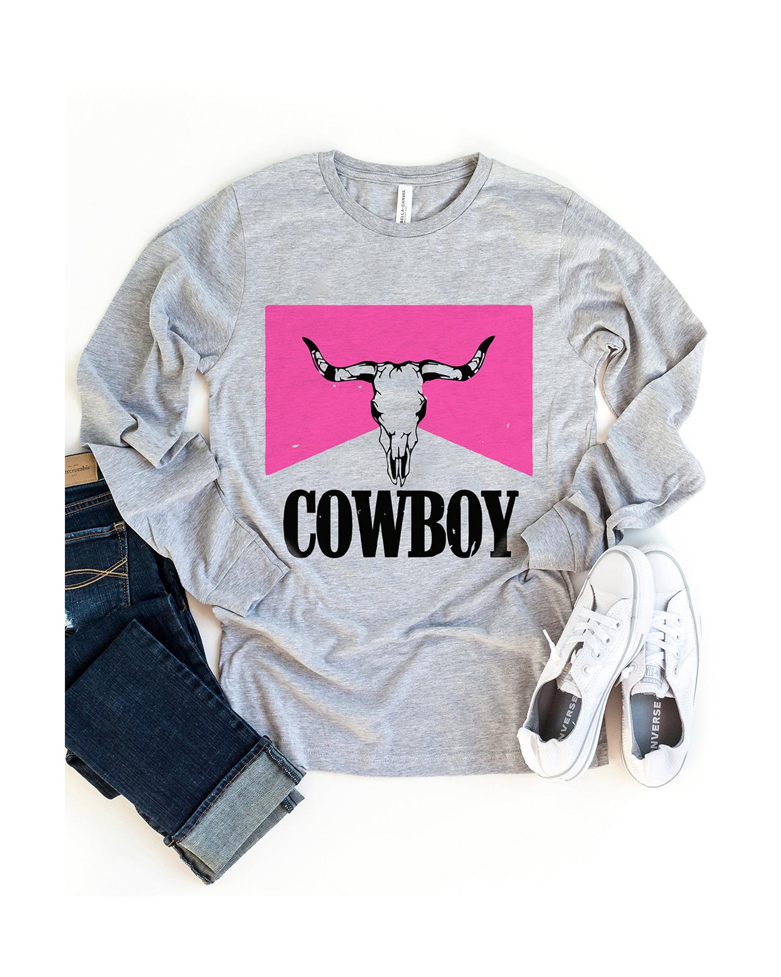 Azura Exchange Color Block Long Sleeve Top with Cowboy Steer Skull Print - S