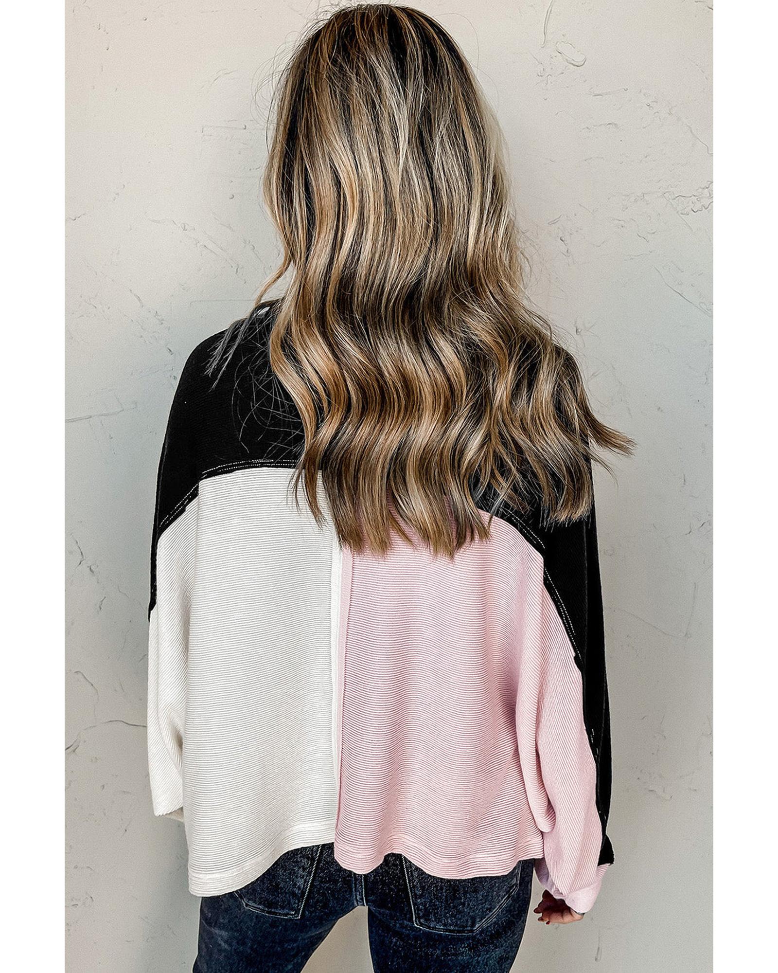 Azura Exchange Colorblock Flap Pockets Henley Collared Top - L