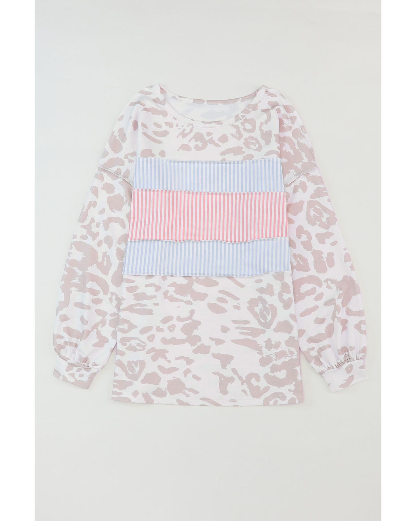 Azura Exchange Contrast Stripes Patchwork Puff Sleeve Knit Top - L