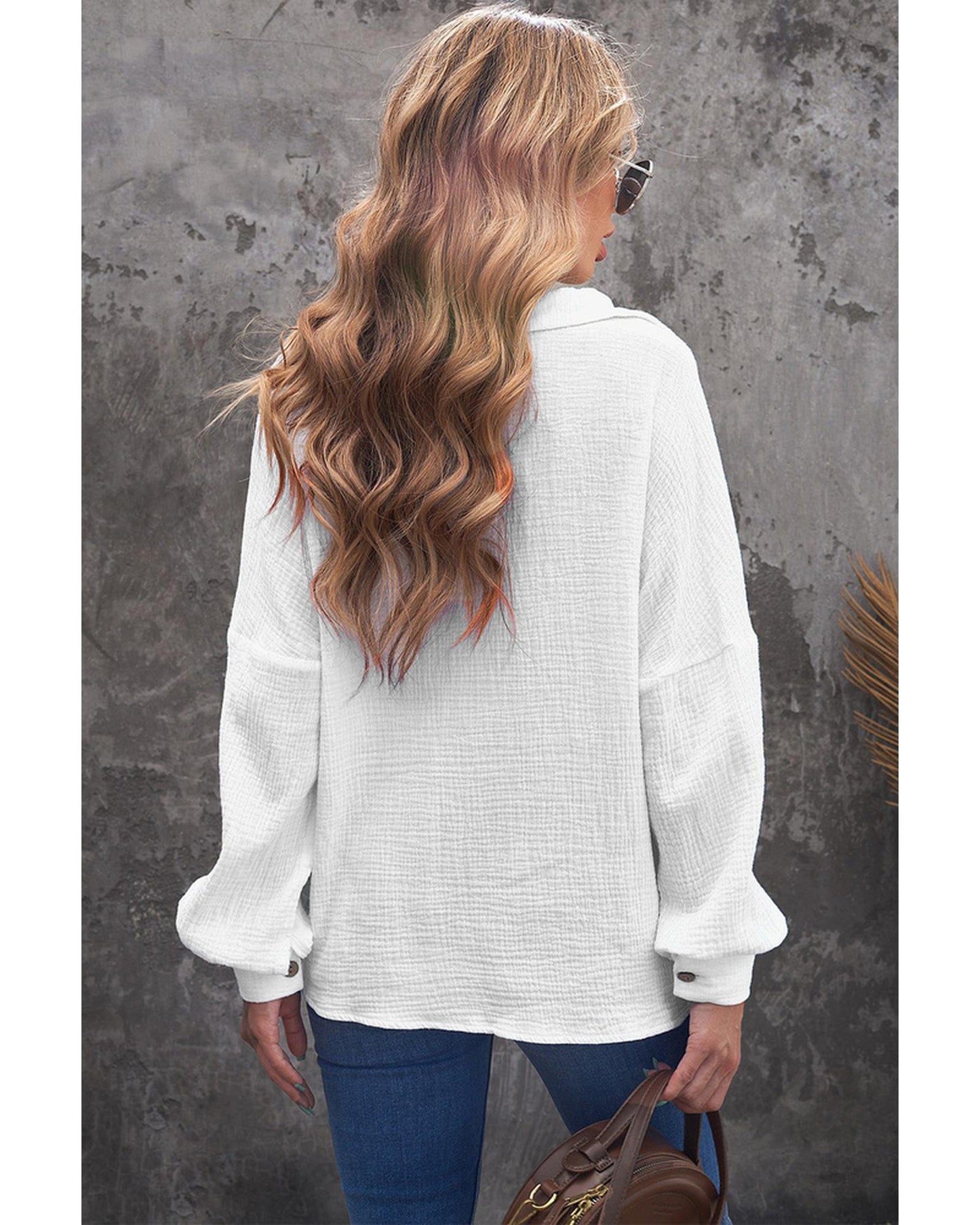 - Stylish and versatile Turn-down Collar V Neck Crinkled Cuffed Shirt