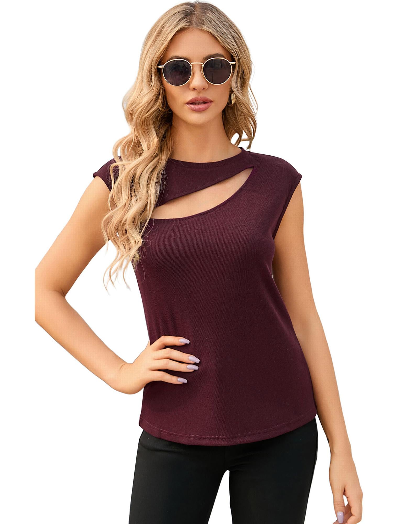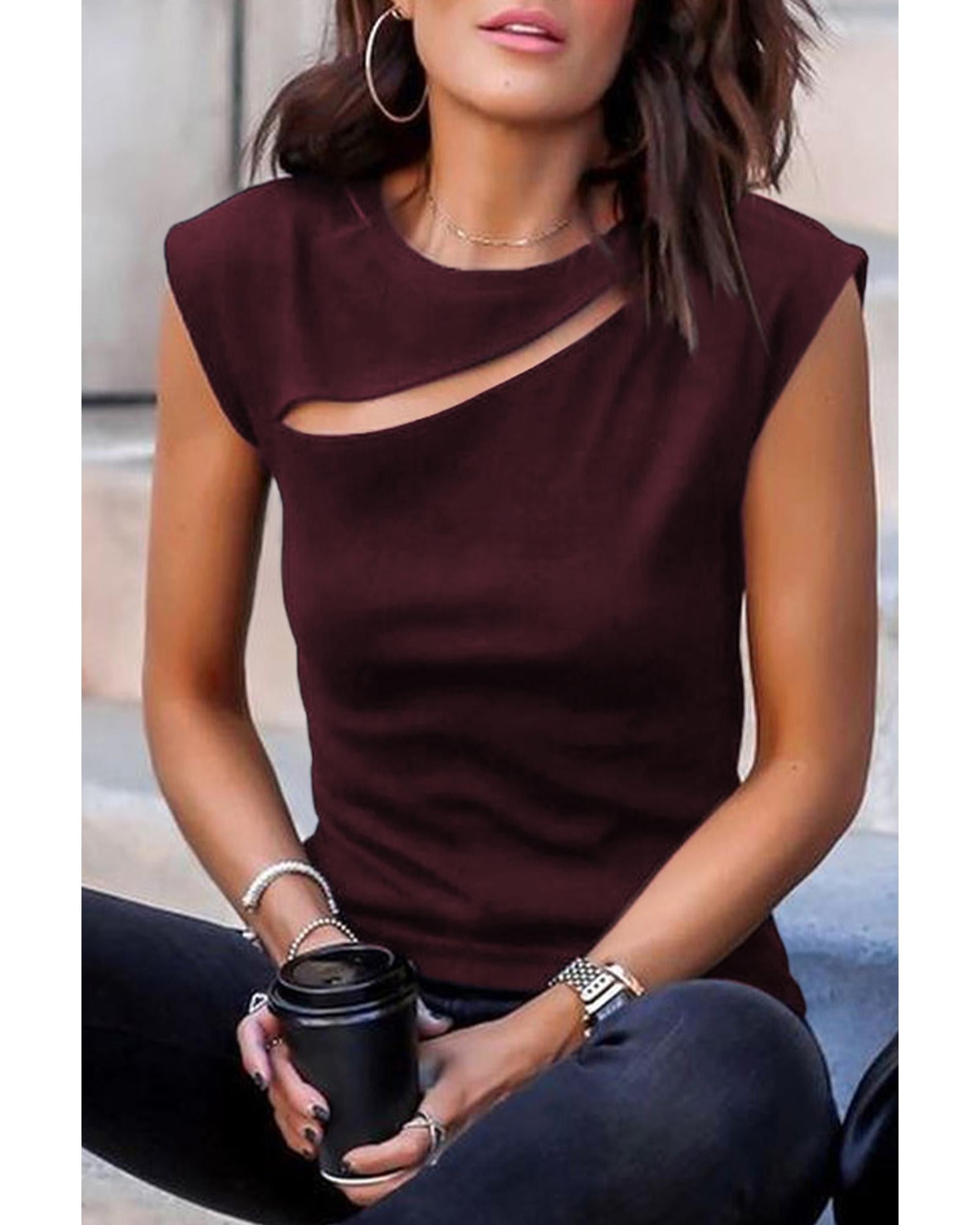 - Stylish and trendy Slash Cutout Cap Sleeve T Shirt