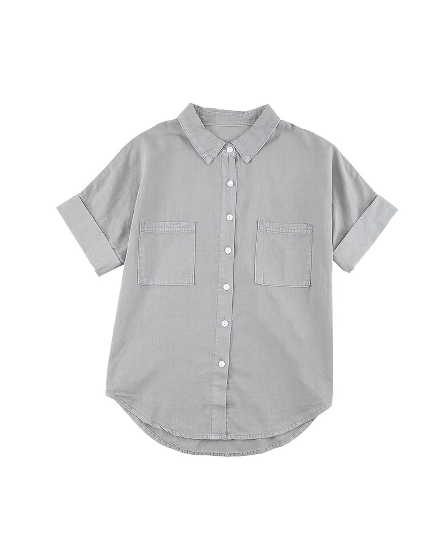 - Stylish and versatile Turn-down Collar Short Sleeve Denim Shirt