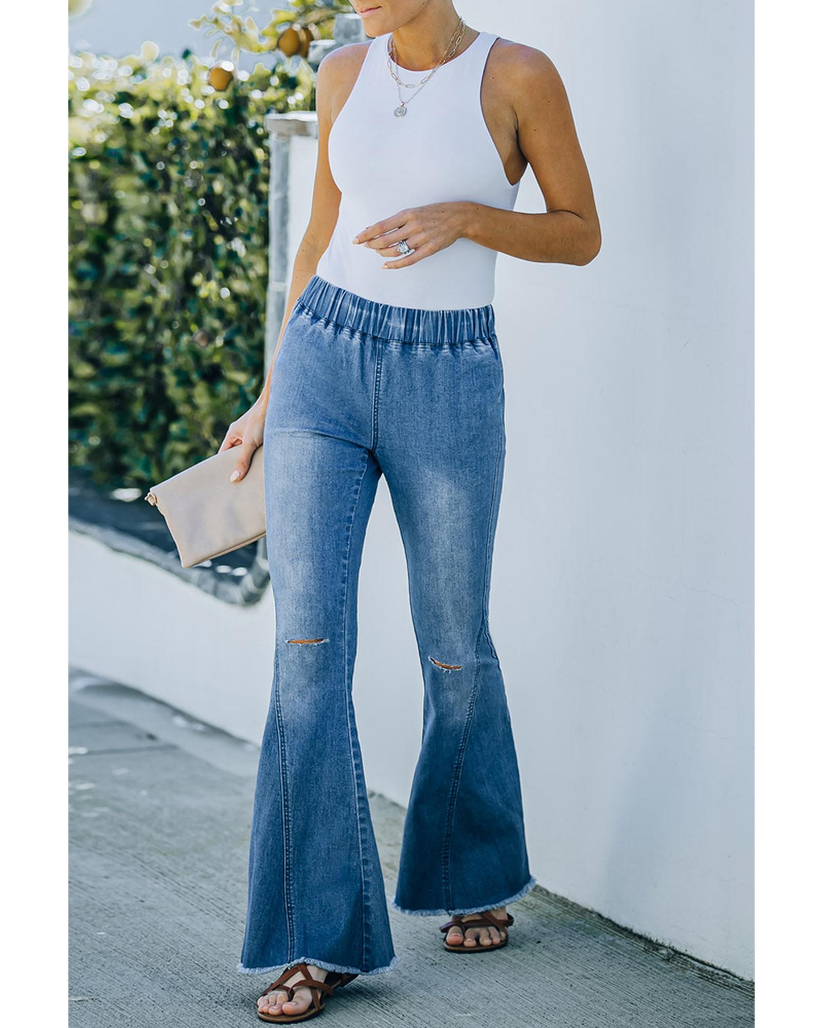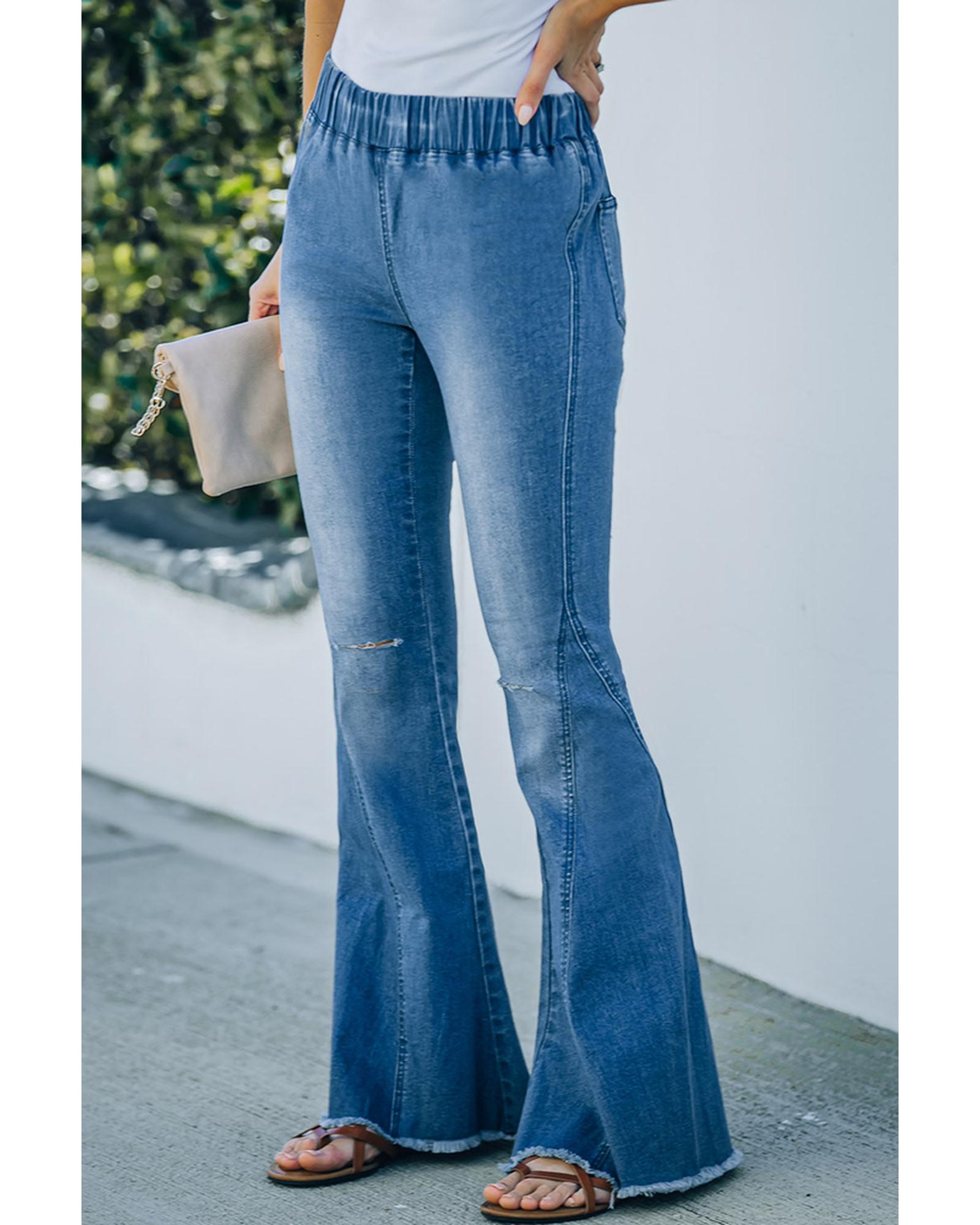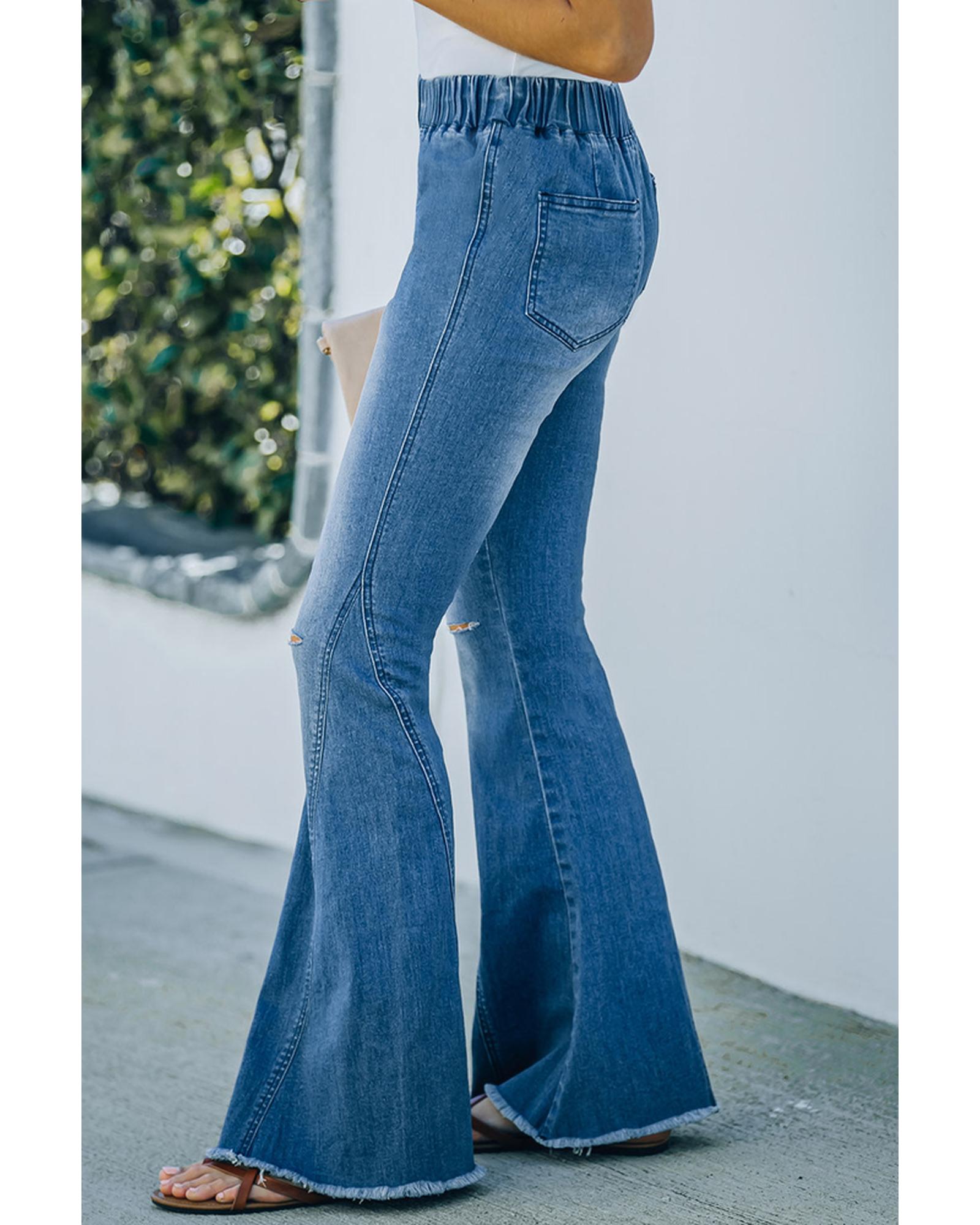 Azura Exchange Distressed Bell Bottom Denim Pants - S