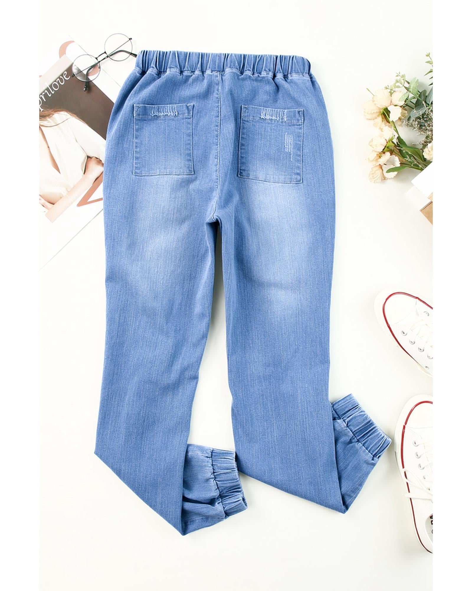 - Pocketed distressed denim joggers