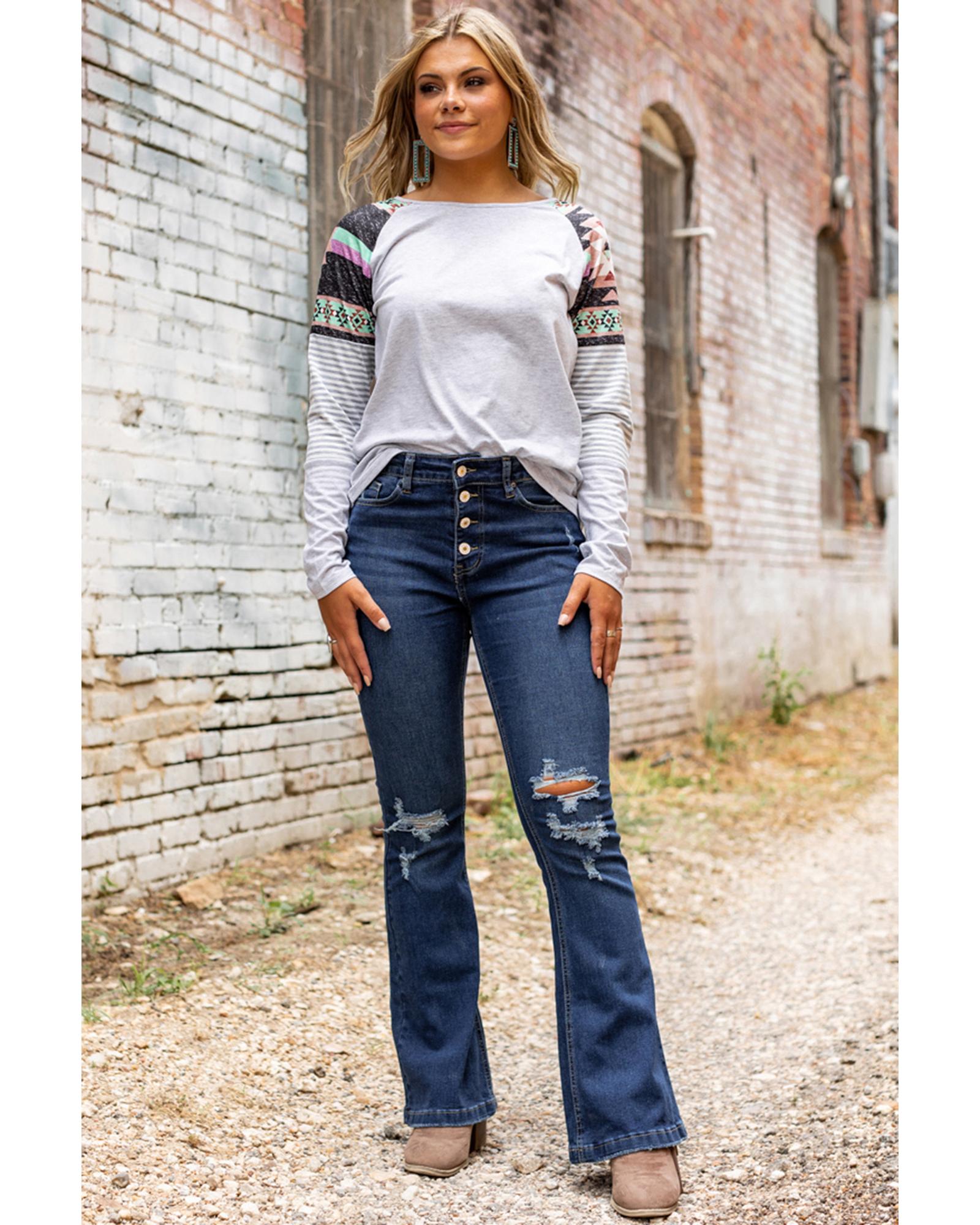 Azura Exchange Distressed Flare Bottom Jeans - S