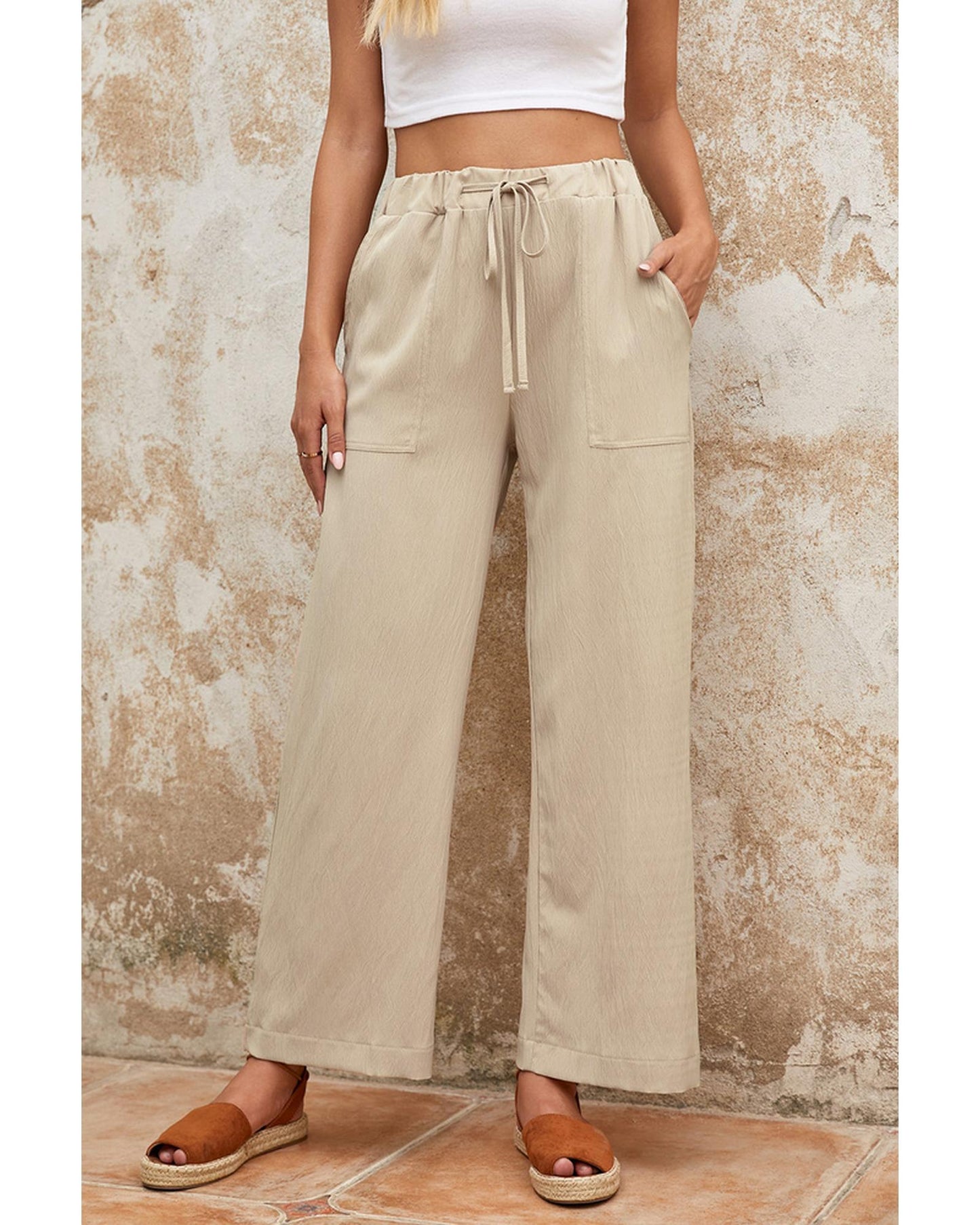 Azura Exchange Drawstring Waist Crinkled Wide Leg Pants - S