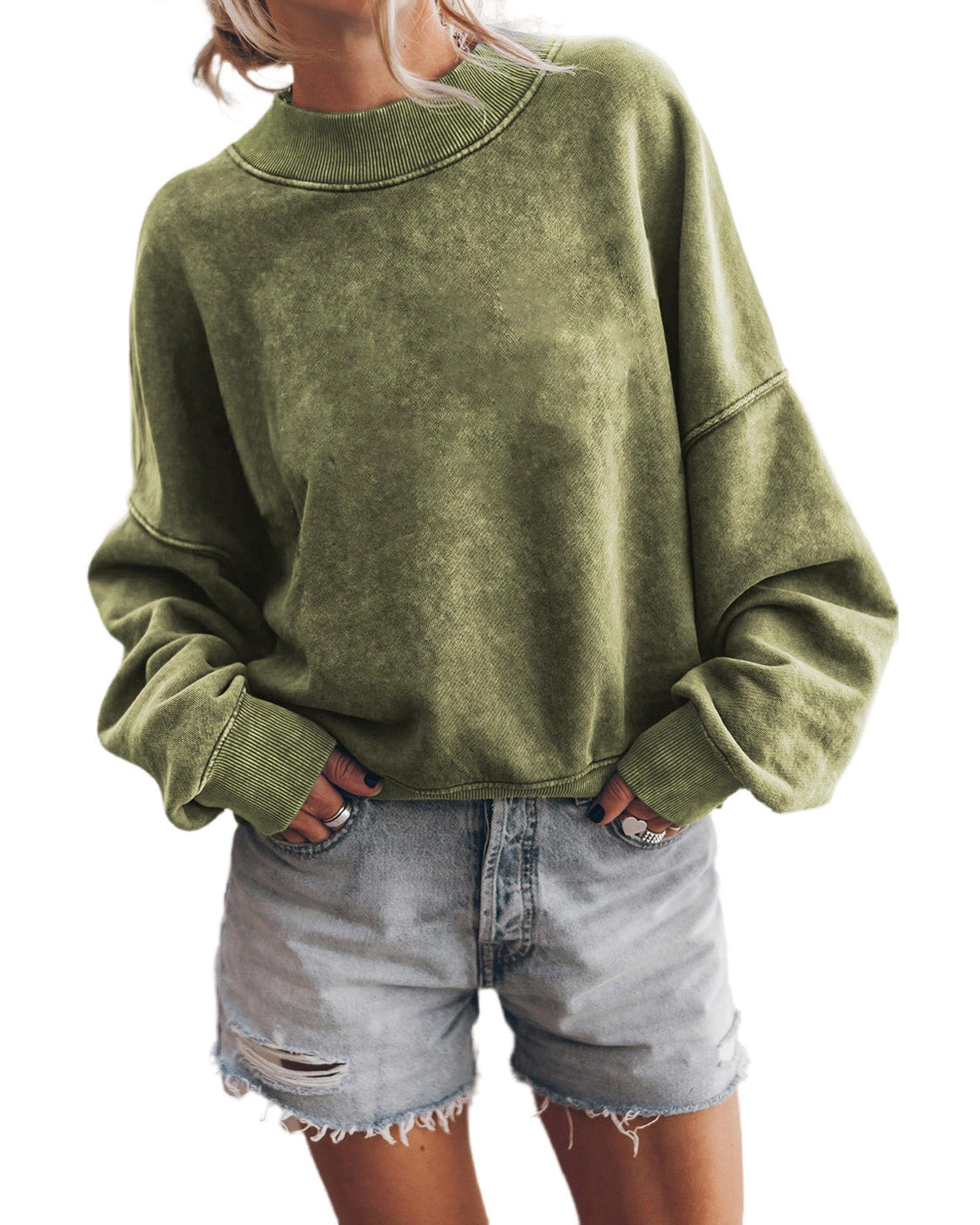 - Green Drop Shoulder Crew Neck Pullover Sweatshirt