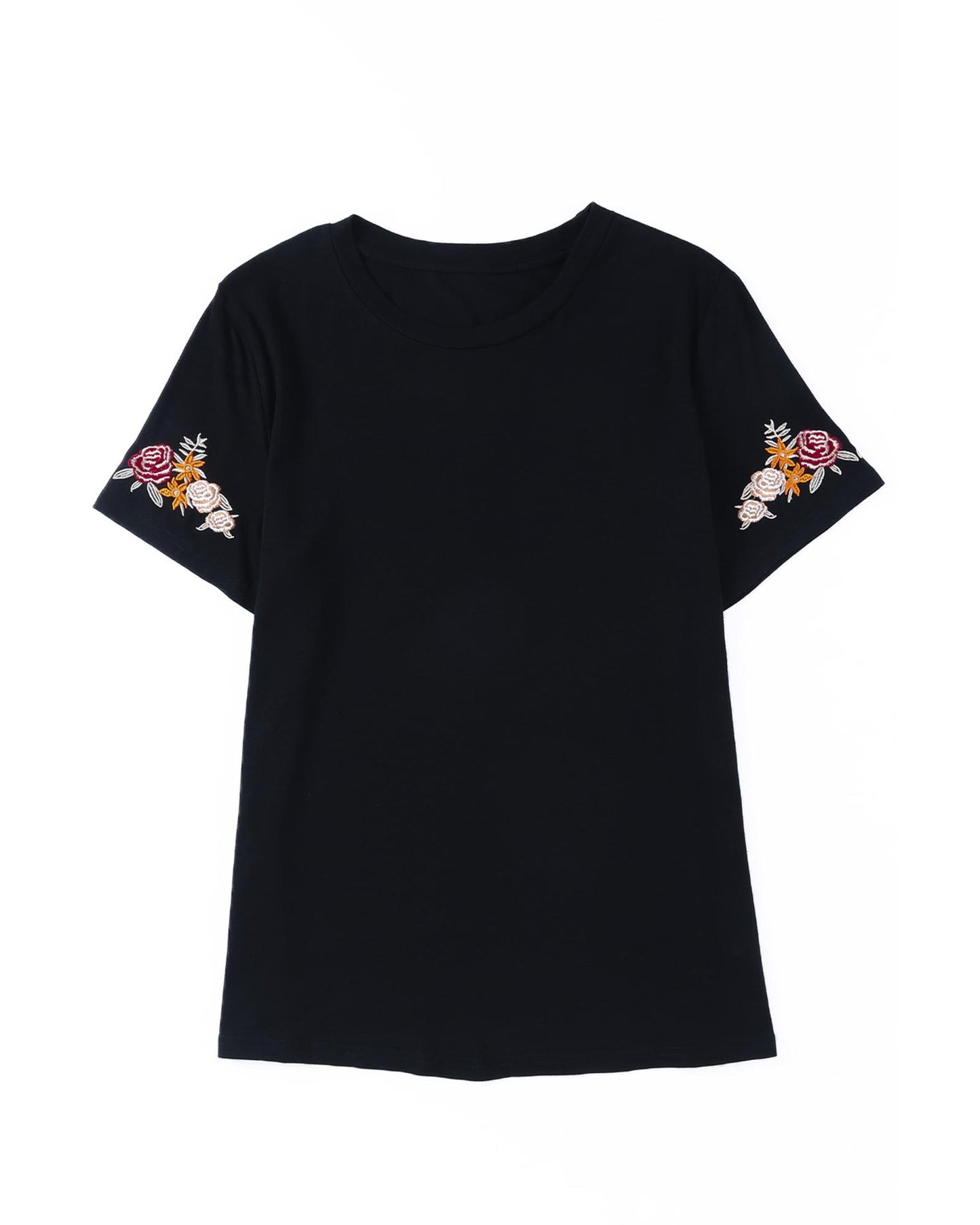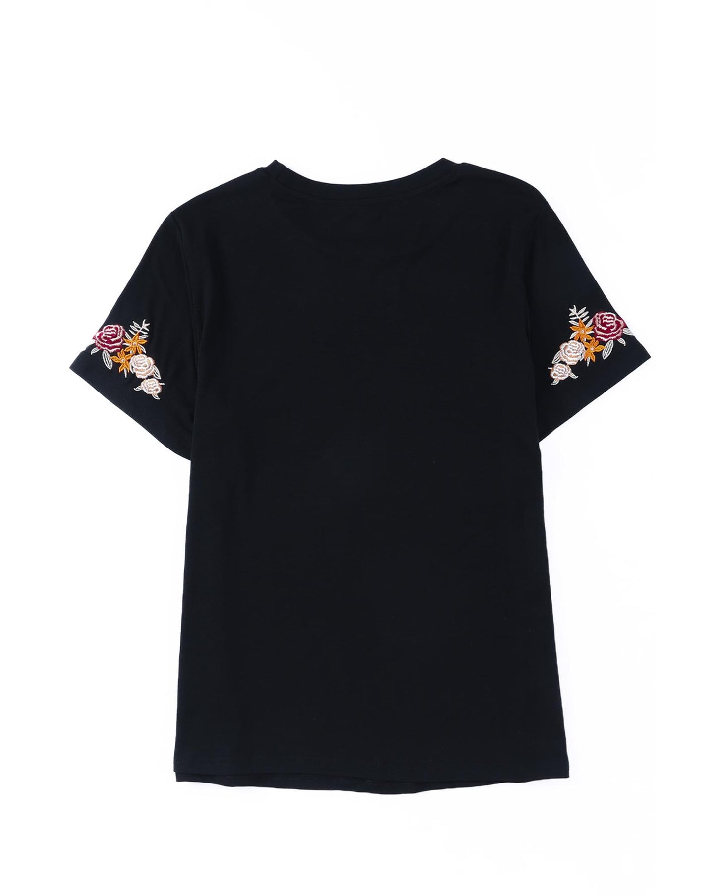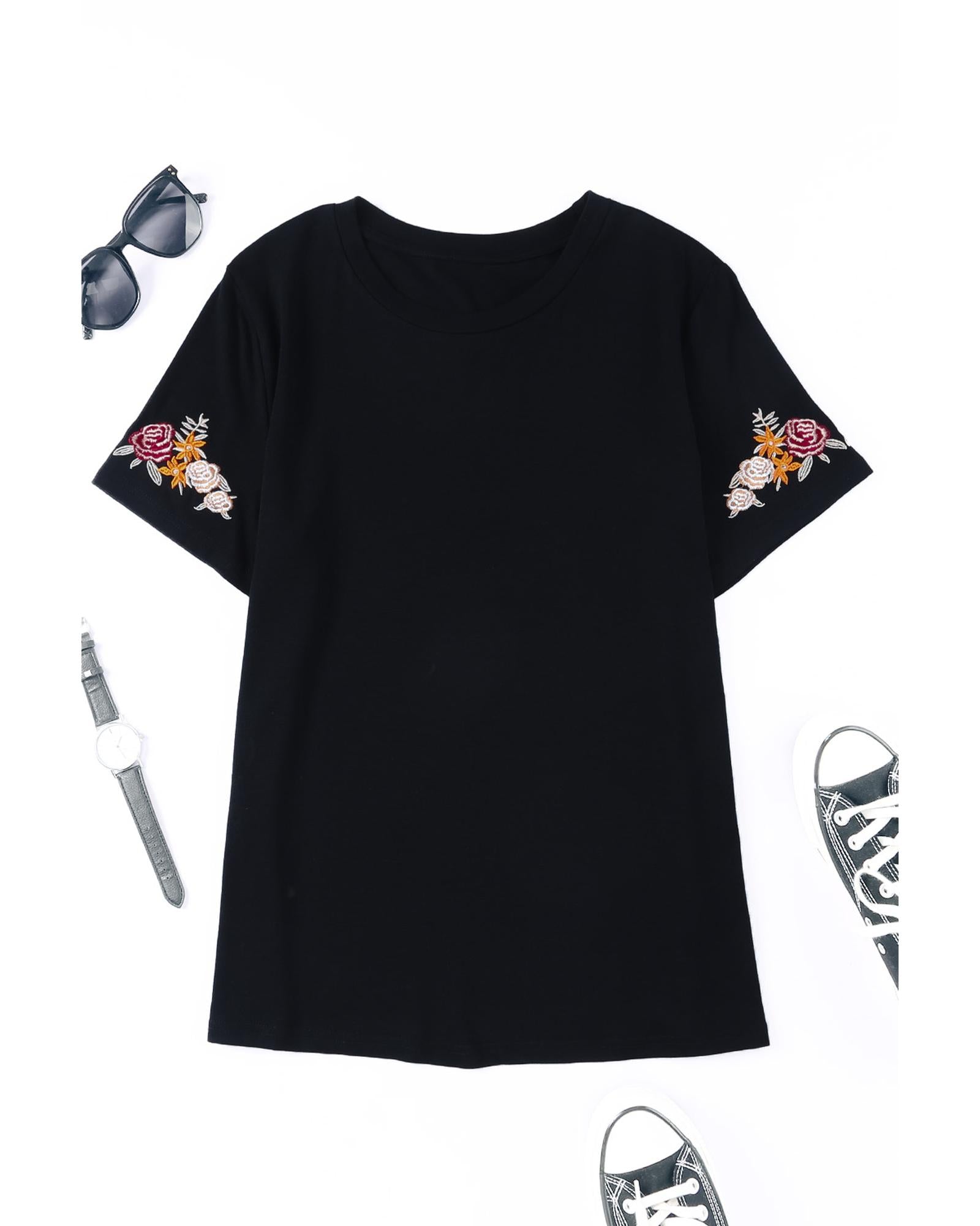 Azura Exchange Embroidered Short Sleeve T-Shirt with Floral Detail - L