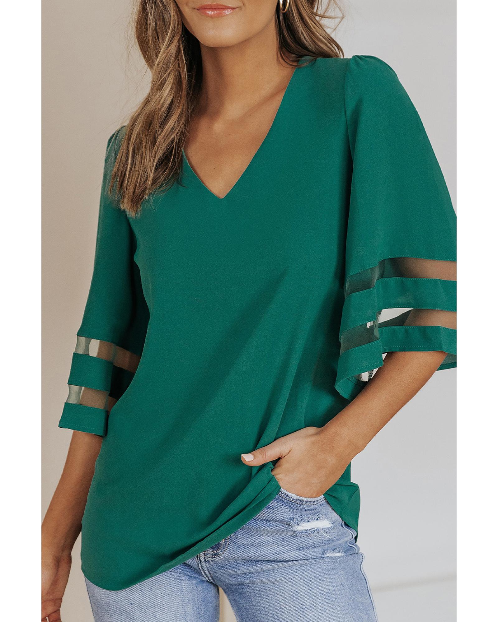 Azura Exchange Flare Sleeve V Neck Loose Blouse - L
