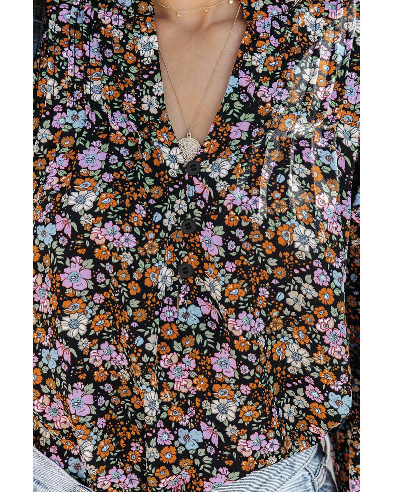 Azura Exchange Floral Print Ruffled Bubble Sleeve Shirt - L