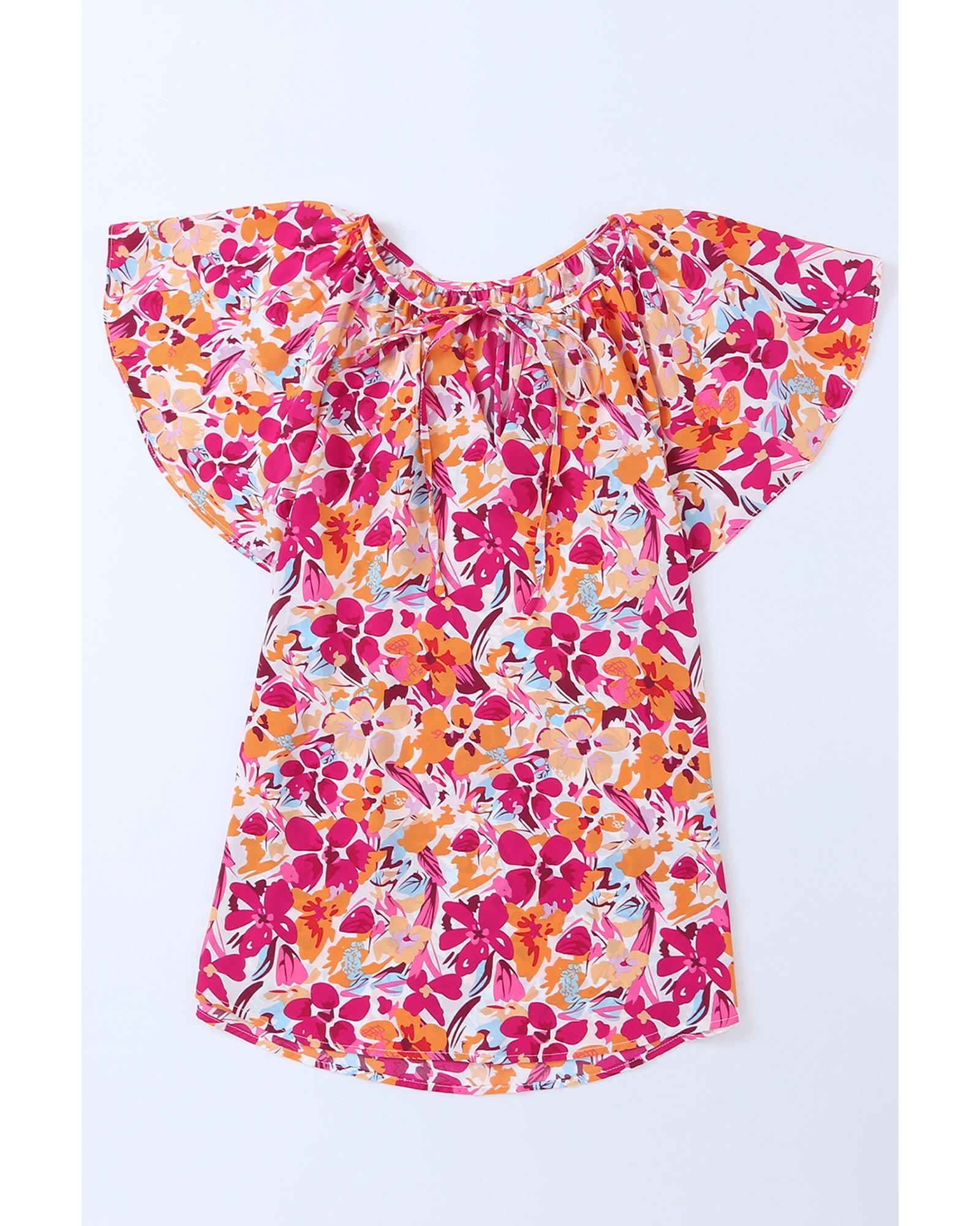 Azura Exchange Floral Print Top with Flutter Sleeves - S
