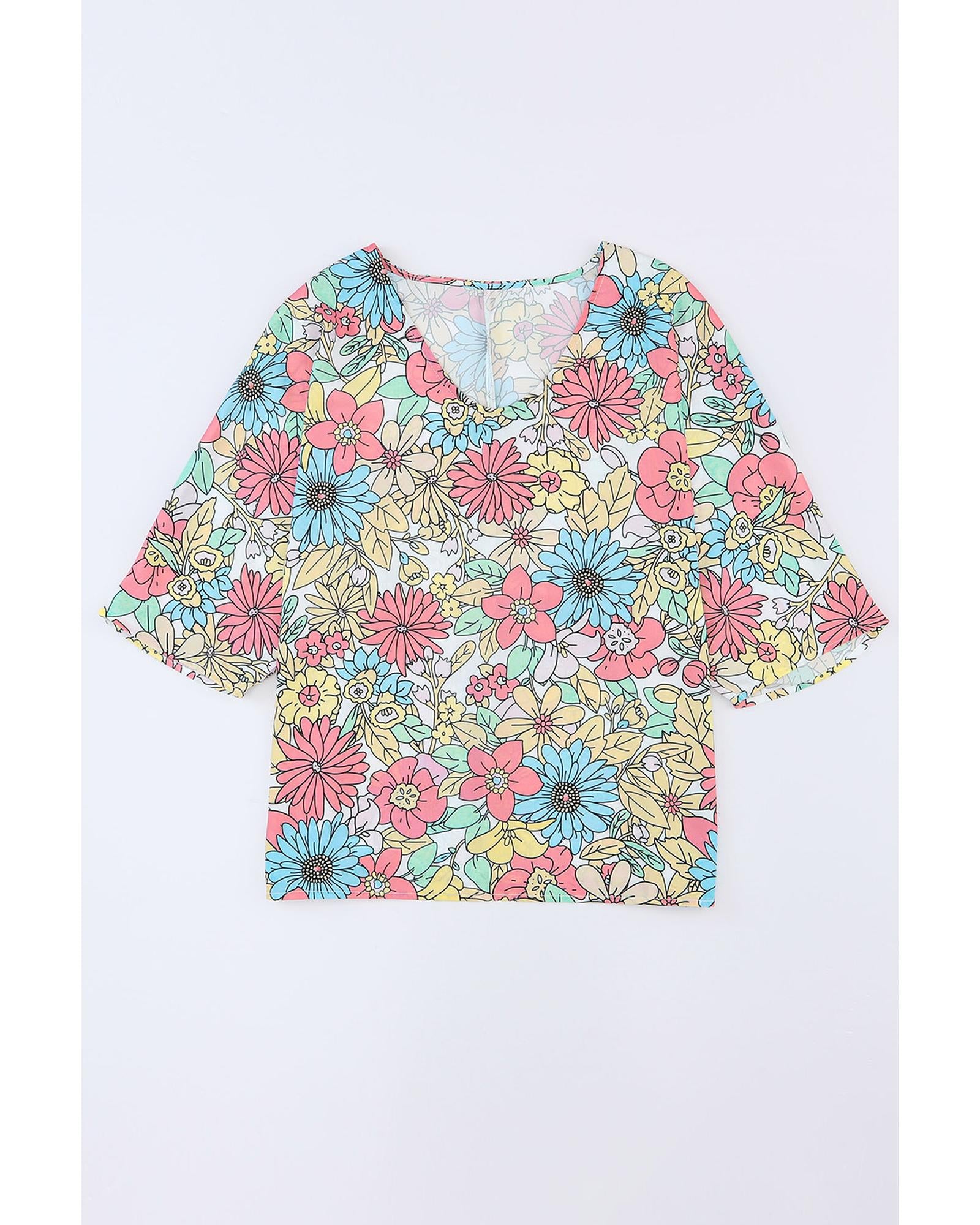 Azura Exchange Floral Print V Neck Half Sleeve Blouse - M