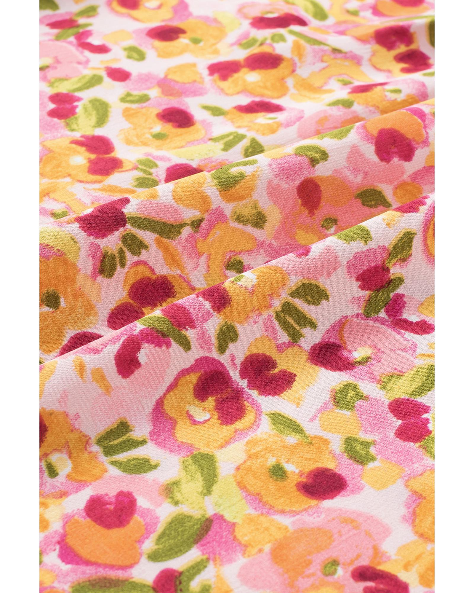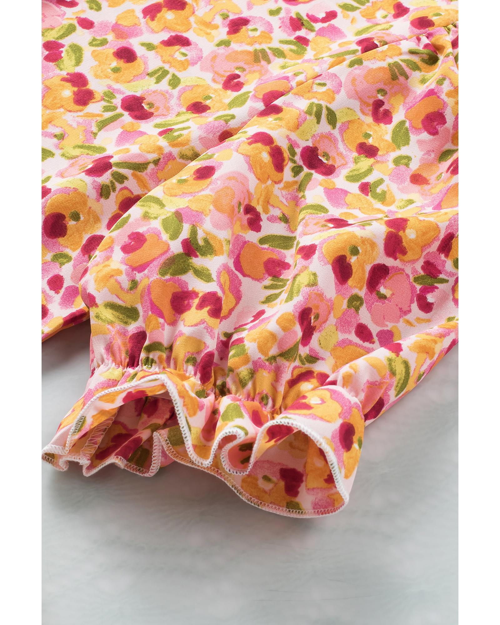 - Boho Floral Ruffle Short Sleeve Frill Mock Neck Blouse