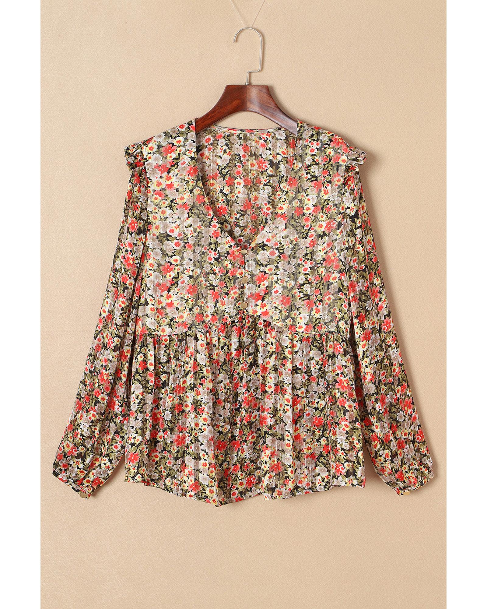 Azura Exchange Floral Ruffled Babydoll Blouse - S