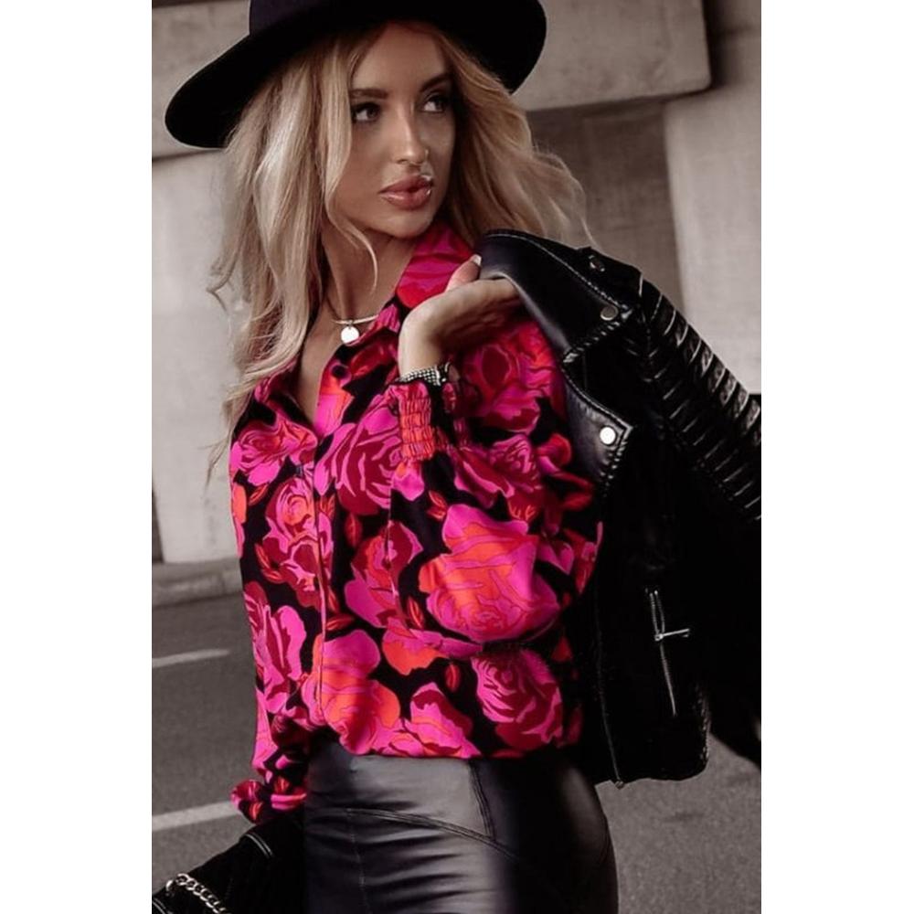 - Floral Shirred Cuffs Long Sleeve Shirt